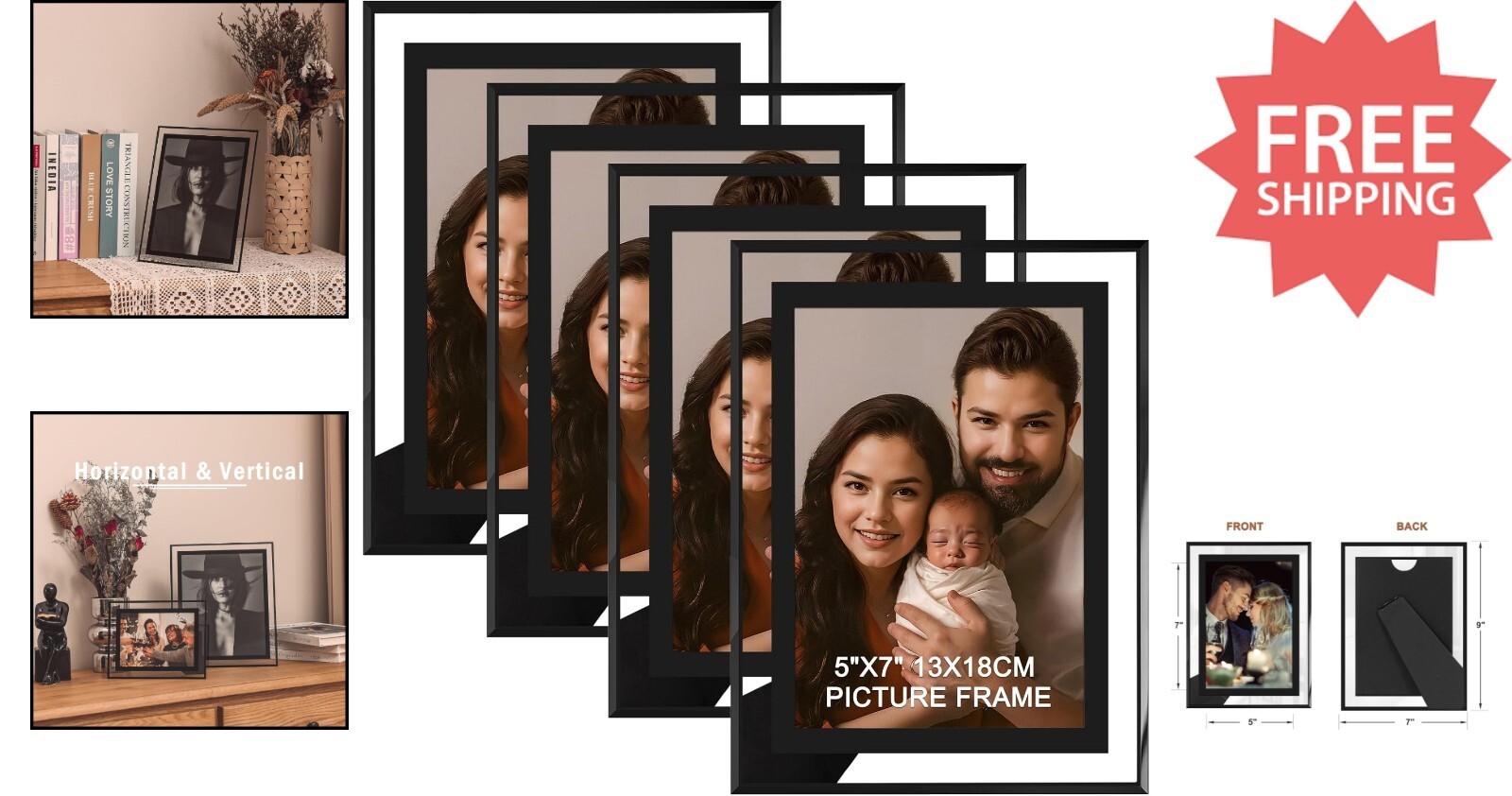 - Elegant Black Glass 5x7 Picture Frames Set of 4 - Perfect for Tabletop Display