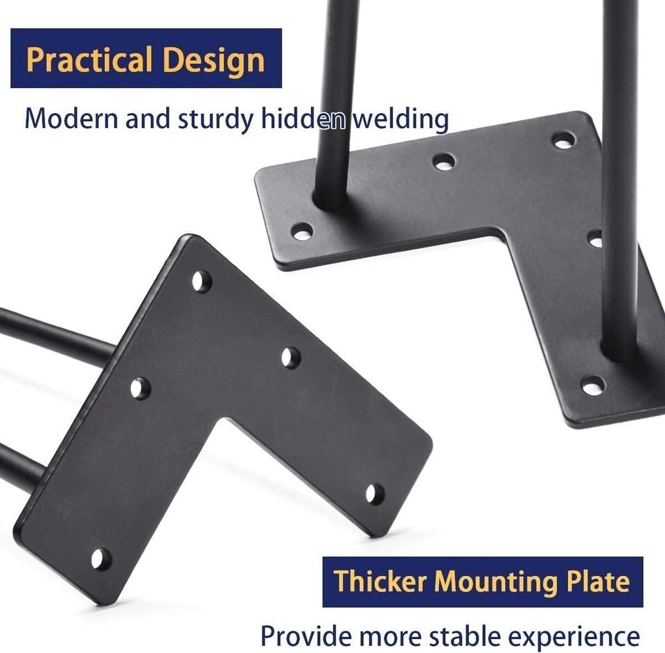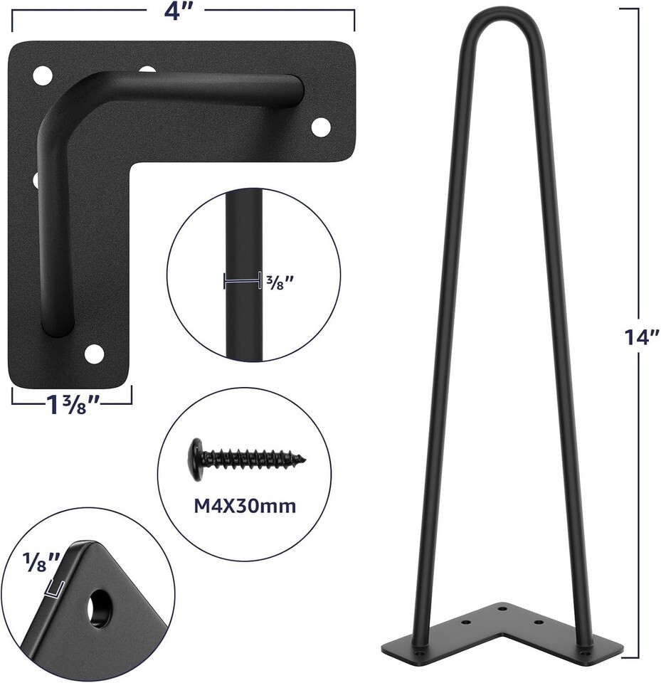 Whether you wish to craft a new coffee table, desk, or bench, these heavy-duty steel legs provide unmatched strength while exuding elegance. Don?t settle for ordinary furniture?create extraordinary pieces with our Elegant Black Hairpin Legs today!