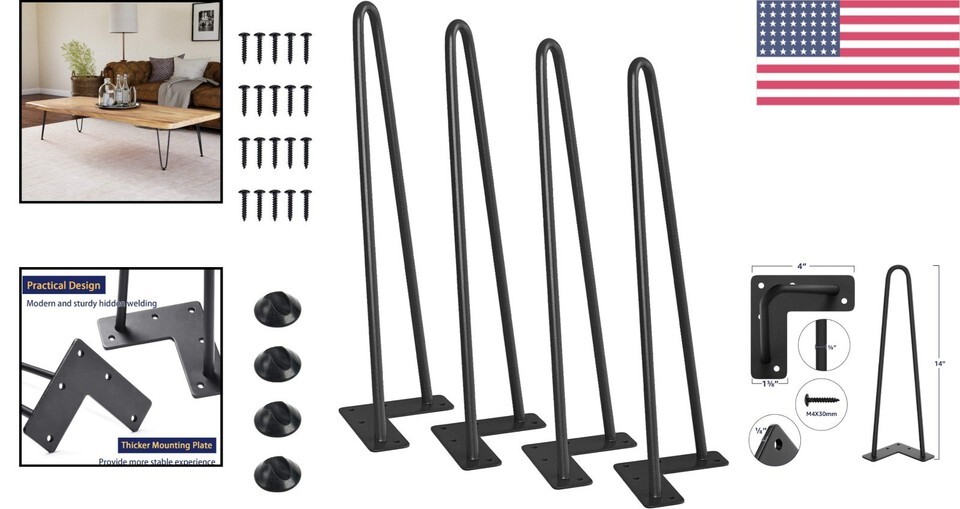Elevate your home decor with our Elegant Black Hairpin Legs that blend functionality with style. Designed for DIY enthusiasts, these 14-inch legs effortlessly combine a modern aesthetic with robust durability, allowing you to design your own masterpieces that reflect your personal flair. The included rubber feet not only enhance stability but also keep your floors pristine, making them a practical addition to any living space.