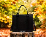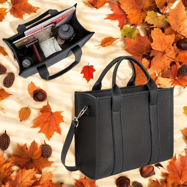 Upgrade your style with this elegant black tote bag. Designed with a spacious interior, it easily accommodates your essentials like a laptop, water bottle, and more. Features an adjustable shoulder strap and sturdy handles for versatile carrying options. Perfect for work, travel, or daily use.