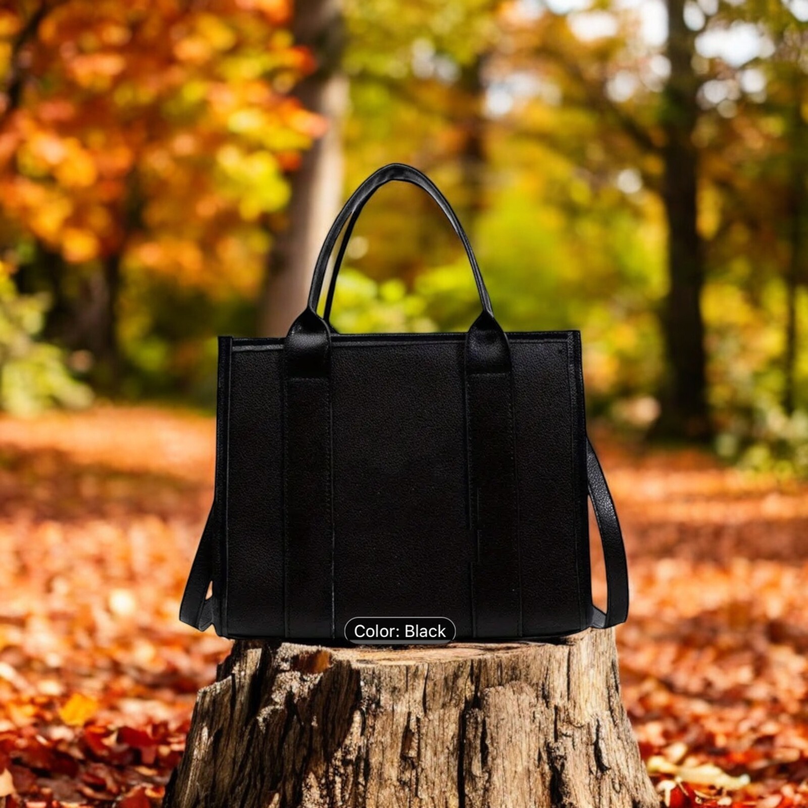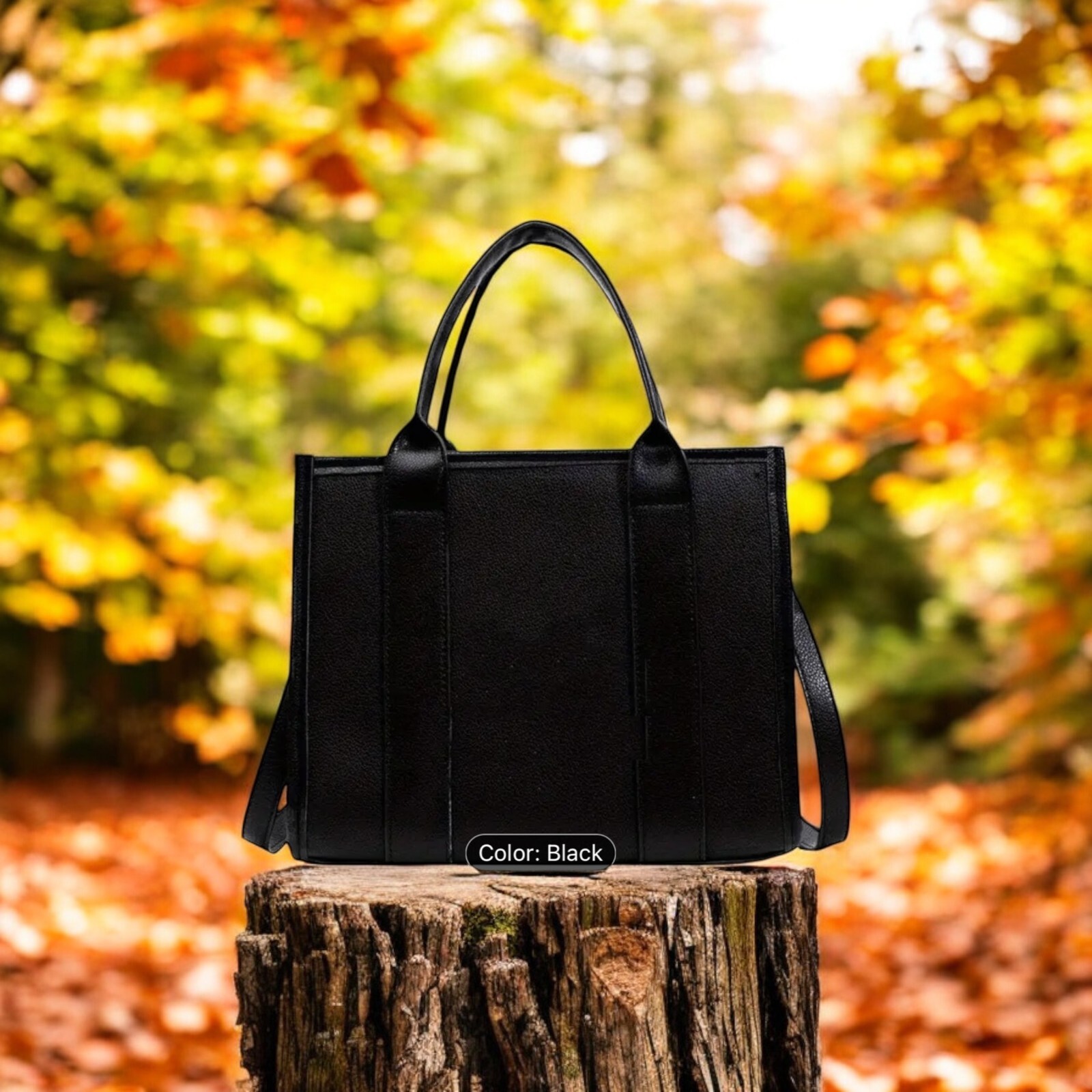 - Elegant Black Tote Bag with Adjustable Strap - Spacious and Stylish Handbag