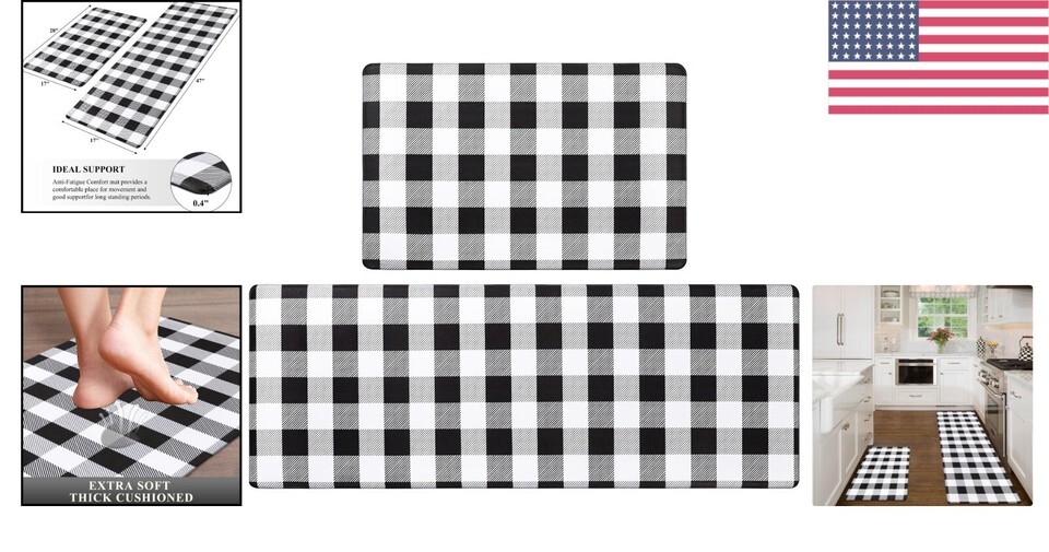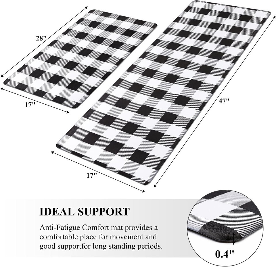 - Elegant Black & White Plaid Anti-Fatigue Kitchen Rugs Set of 2, Non-Slip Design