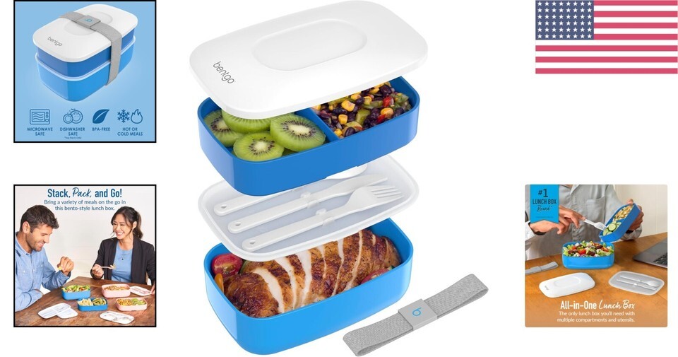 All-in-One Convenience: Includes a built-in utensil set, three separate compartments, and a durable nylon strap for quick, hassle-free meals on the go!