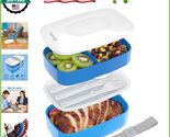 - Elegant Blue Stackable Bento Lunch Box with Utensils - Perfect for On-the-Go