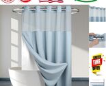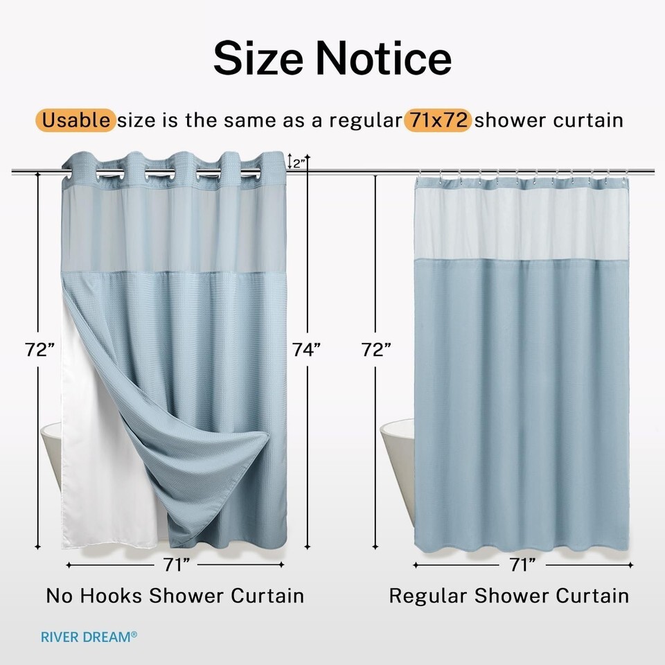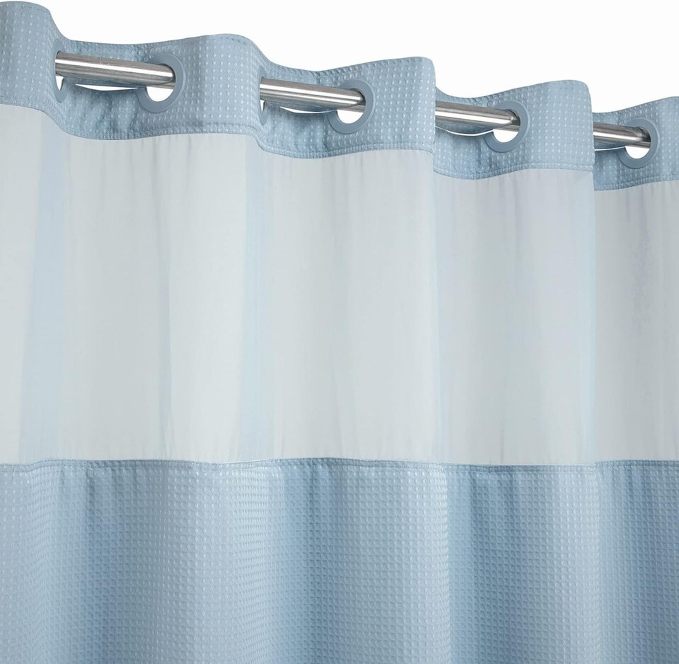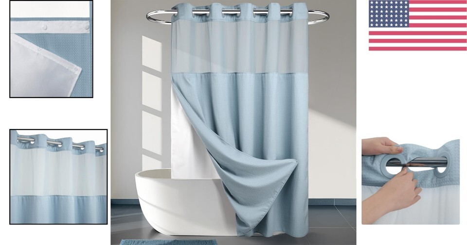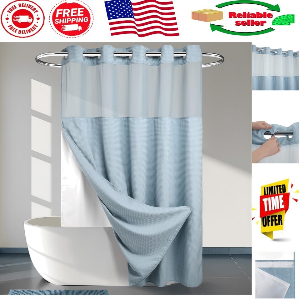 Elegant Blue Waffle Weave Shower Curtain with Snap-in Liner - Hotel Quality