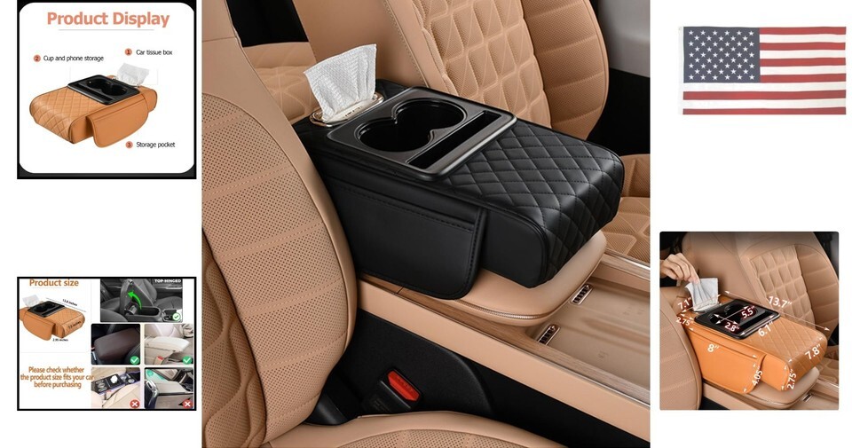 - Elegant Car Armrest Cushion with Cup Holder & Storage Slots - Perfect for Sedans