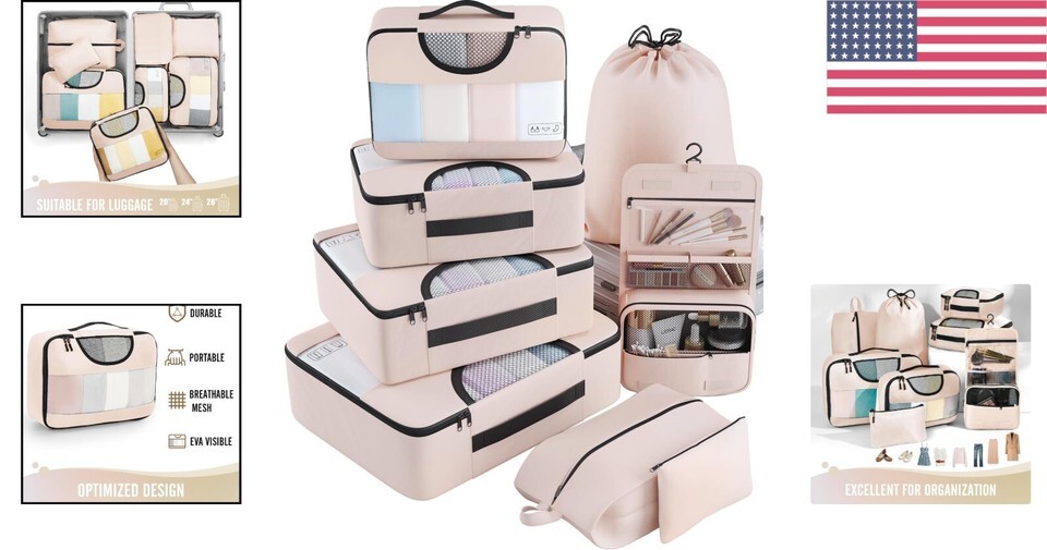 Transform your travel experience today - order your Elegant Cream Black Packing Cubes with Toiletry Laundry Bag and travel in style!
