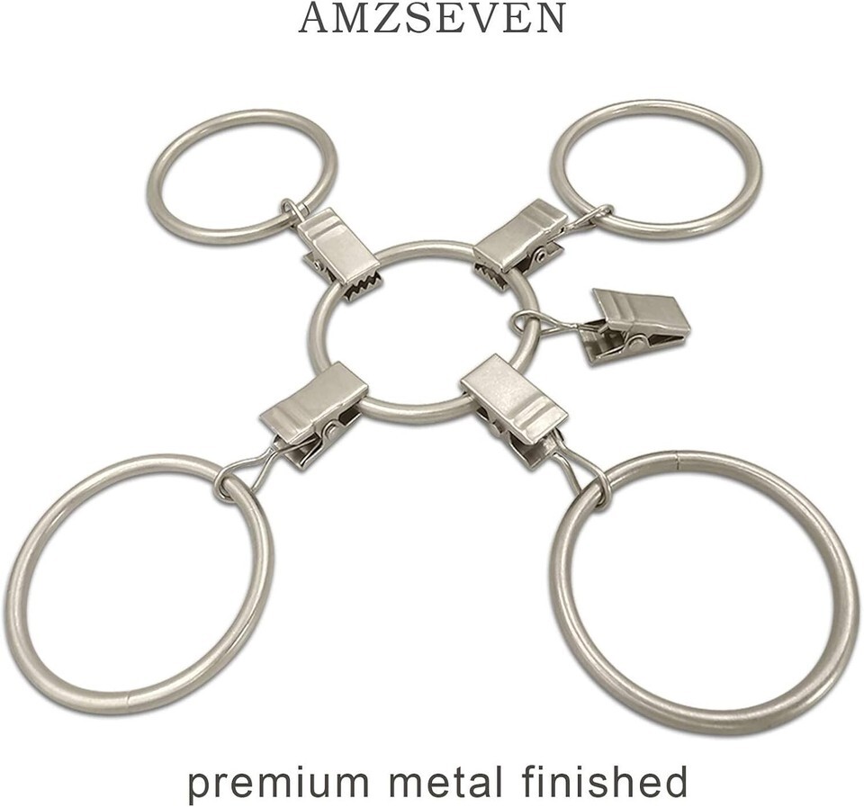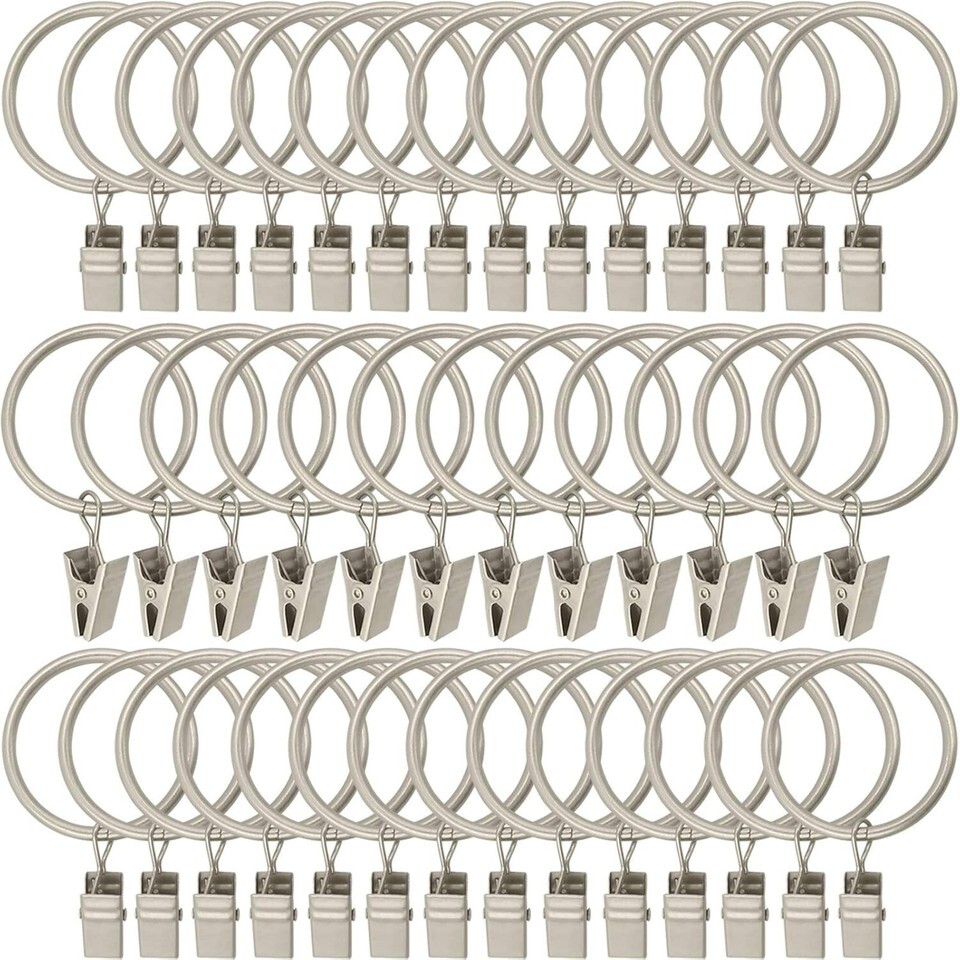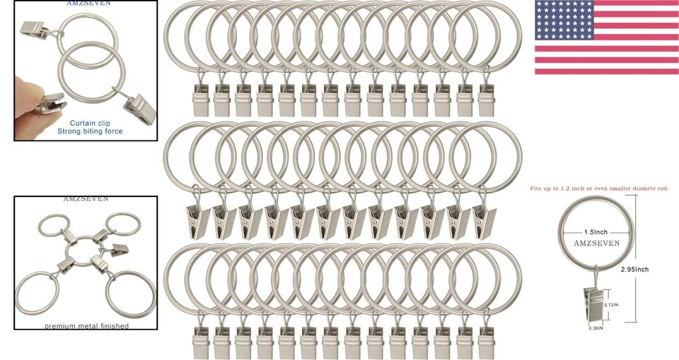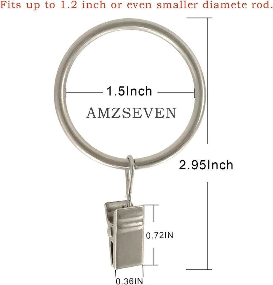 - Elegant Matte Silver Curtain Rings with Clips - 1.5" Inner Diameter, 40 Pack