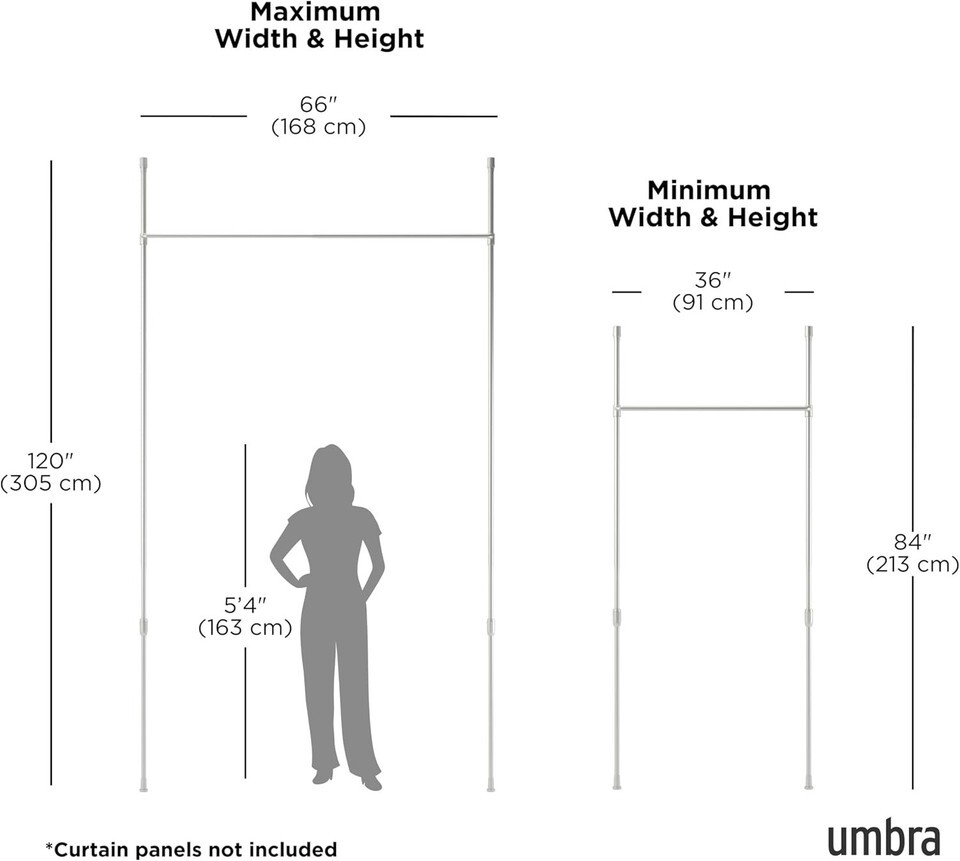 Fully Adjustable: Extends from 7-10ft (213cm - 304cm) in height and adjusts 35-66 inches (91cm - 167cm) in width for a perfect fit in any space.