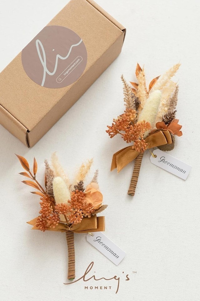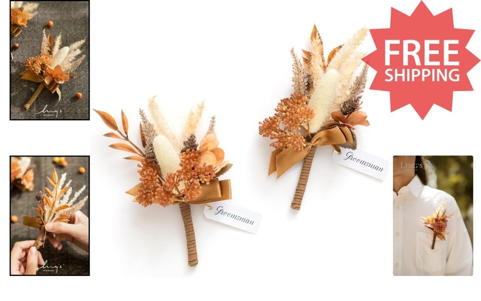 Elevate your special day with Ling?s rust sepia collection, crafted to create a warm, rustic romance. Each set includes two beautifully designed boutonnieres, approximately 4.7 inches tall and 1.5 inches wide, made from high-quality foam and silk flowers with fresh greenery. Elegantly packaged for gifting and protection, these durable accessories are perfect for the groom, groomsmen, or distinguished guests. Ideal for vintage, outdoor, French-inspired weddings, or any festive occasion like anniversaries, proms, or homecomings. Please note that flowers may stretch or lose shape during shipping, easily remedied by hand or steam. To ensure fast and reliable delivery, we work with multiple fulfillment partners and suppliers. Depending on availability and location, your order may ship from different warehouses or arrive in packaging that varies from item to item. Tracking details are typically provided shortly after shipment, and customer satisfaction remains our top priority. Please note that due to carrier policies and regional regulations, certain items may not be eligible for delivery to specific states or territories.