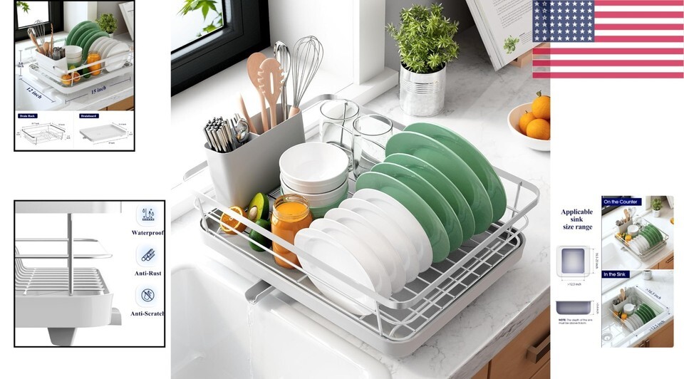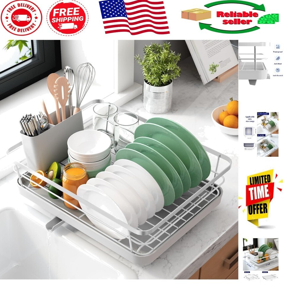 Elegant Stainless Steel Dish Drying Rack | Space-Saving with Cutlery Holder, ...