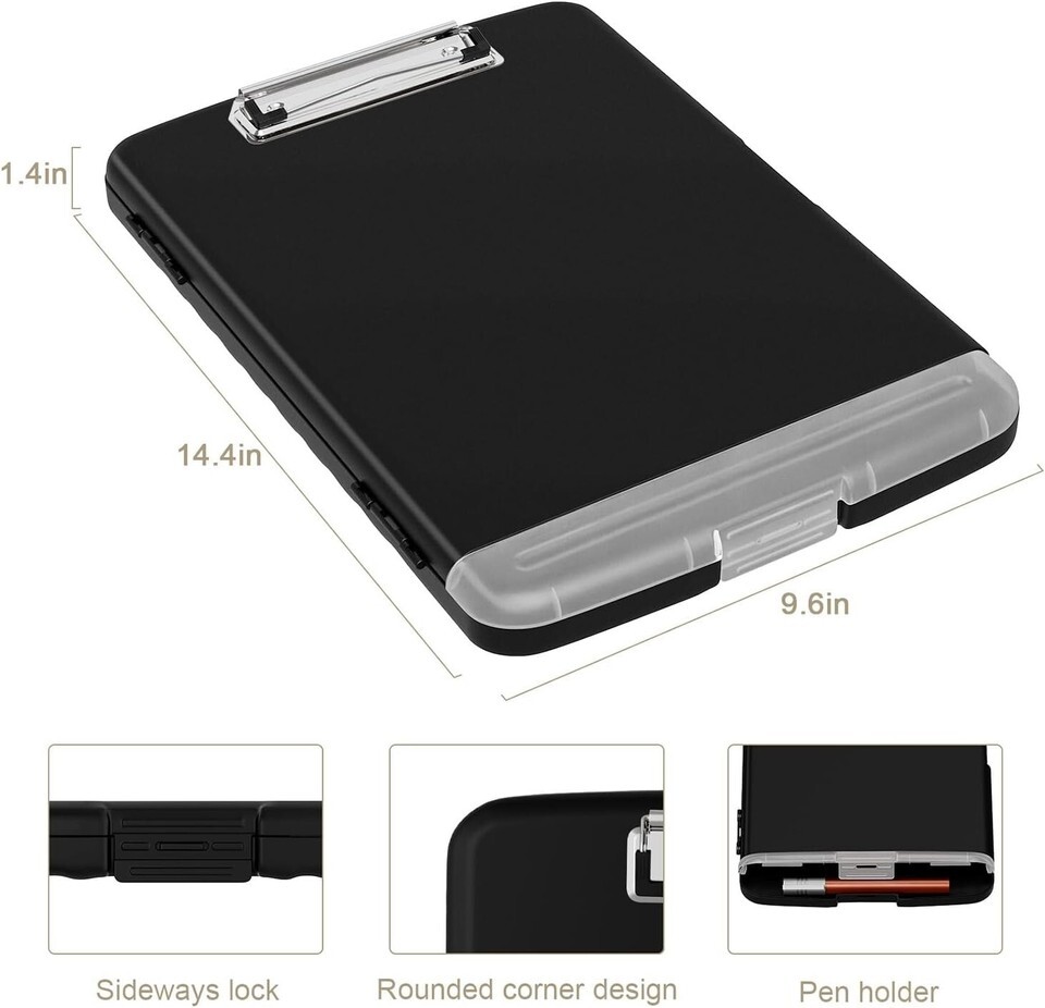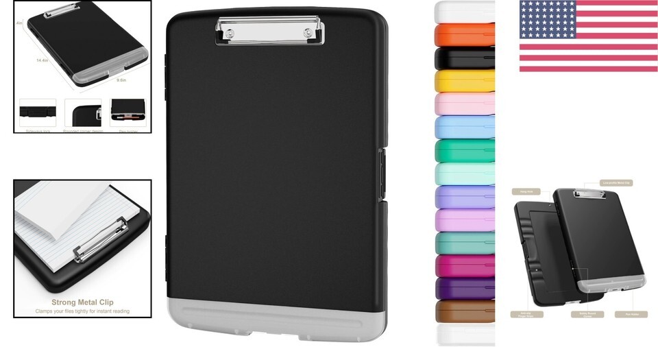 Elegant Storage Clipboard with Pen Holder - Perfect for Nurses Teachers ? ? ? ? ? ? ? ? ? ? ? ? ? ? ? ? ? ? ? ? Elegant Storage Clipboard with Pen Holder Perfect for Nurses Teachers Features: High Capacity: Built-in paper storage box and pencil case, large enough to hold up to 200 sheets of A4 paper and 6 pencils, ensuring that all daily office supplies are organized and within . Portable Design: Clipboard dimensions of 14 x 9.6 x 1.4 inches and weighing only 16 oz, making it convenient to carry. Designed with anti-slip finger grips for easy handling, and round corners for effortless storage in bags. Built to Last: Crafted from thick plastic, this clipboard is high-impact and anti-fray, with a smooth writing surface. A unique hinge-and-clasp system ensures durability through millions of uses. Easy to Use: Side-opening design for quick access to your supplies. Features a strong metal clip on top to hold documents securely for easy reading and writing at any moment. Securely Closed: Enhanced latches are sturdy enough to keep both compartments tightly closed, securely holding your papers, pens, and all office accessories, preventing any chance of loss or damage. Benefits: Organized and Efficient - Keep your office supplies neatly stored and accessible. Stylish and Professional - A sleek design caters to both nurses and teachers, perfect for your professional image. Durable and Reliable - Built to withstand daily usage, guaranteeing longevity. Convenient Access - Quickly retrieve documents and supplies when needed. Why Choose Our Elegant Storage Clipboard? If you're a nurse or teacher seeking a stylish yet practical solution to keep your office supplies neat and accessible, look no further than our Elegant Storage Clipboard. This thoughtfully designed clipboard merges functionality with elegance, making it a perfect companion for your professional life. With ample storage capacity, portability, and durable construction, this clipboard not only enhances your organization but also adds a touch of sophistication to your daily tasks. Elevate your office experience?order your Elegant Storage Clipboard today! Shipping Free Fast Shipping - We offer free shipping to most of the USA with a normal delivery time of 3-7 days. However, due to the current situation, additional delivery time (up to 3 weeks) may be required for some items. Alternative Carriers - We may use alternative carriers (e.g. USPS, FedEx, UPS, etc.) to ensure your package arrives safely and on time. Due to the use of multiple carriers, we are unable to provide a tracking number automatically. Handling Time - Orders are processed and shipped within 1-2 business days of receiving cleared payment. Shipping Restrictions - Shipping to Alaska, Hawaii, Puerto Rico, Guam, and other US territories may incur shipping charges or delivery restrictions. Please contact us before ordering, or your order can be refunded/cancelled. State Restrictions - There may be restrictions based on your state of purchase. For example, certain items may not be shipped to California due to state regulations. Contact for Tracking Updates - If you require tracking updates or have any concerns about the delivery of your order, please feel free to contact us, and we will be happy to assist you. Return 30-Day Hassle-Free Returns - We want you to be completely satisfied with your purchase. If you are not, you can return the item within 30 days of receiving it for a full refund or exchange. Easy Return Process - To start a return, simply contact us and we will provide you with a prepaid return shipping label and detailed instructions. Restocking Fee - There are no restocking fees for returns. However, the buyer is responsible for return shipping costs if the return is not due to a seller's error. Refund Processing Time - Refunds will be processed within 5 business days of receiving the returned item in its condition. Payment We accept all major credit cards, PayPal, and Apple Pay for your convenience. Your payment information is secure and encrypted to ensure a safe and seamless transaction. Please complete your payment within 3 days of purchase to avoid any delays in shipping. Feedback Your feedback is extremely important to us. We strive to provide the best products and customer service possible. If you are satisfied with your purchase, please take a moment to leave us a positive review. If you have any concerns or issues with your order, please contact us before leaving negative feedback. We are committed to resolving any problems and ensuring your satisfaction. Contact Us If you have any questions or concerns, please feel free to out to our customer support team. You can contact us through the messaging system. We are available Monday to Friday, 9:00 am to 5:00 pm EST, and we will do our best to respond to your inquiry within 24 hours. Buy it now and enjoy a pleasant shopping experience! Model: Clipboard with Storage MPN: Clipboard_with_Storage Color: Black