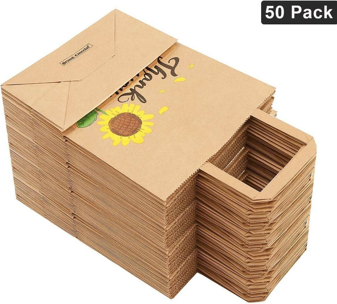 Elegant Sunflower Paper Gift Bags - 50 Count, Ideal for Weddings Baby Showers