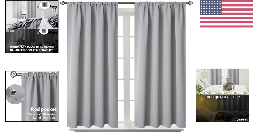 - Elegant Thermal Insulated Light Grey Room Darkening Curtains 42x48 for Privacy
