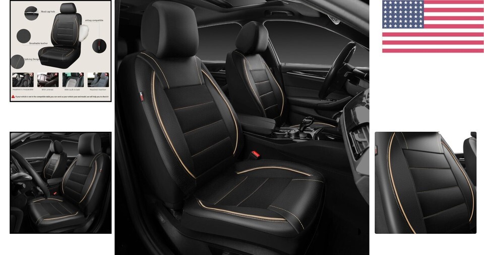 - Elegant Waterproof PU Leather Front Seat Covers Set for Trucks, Vans, SUVs - 2PC