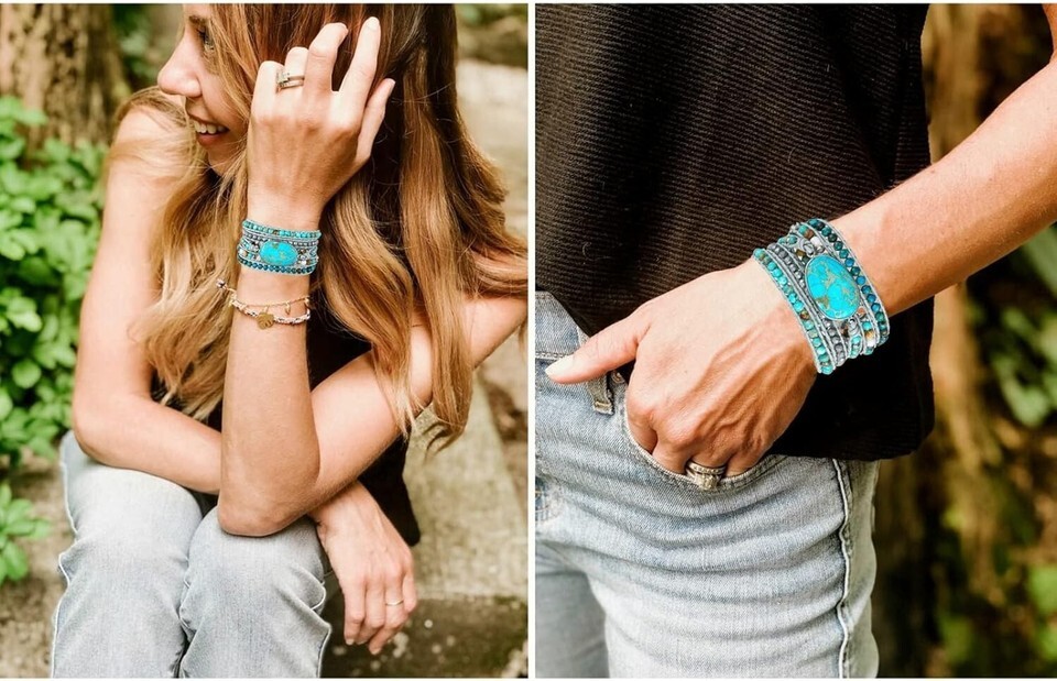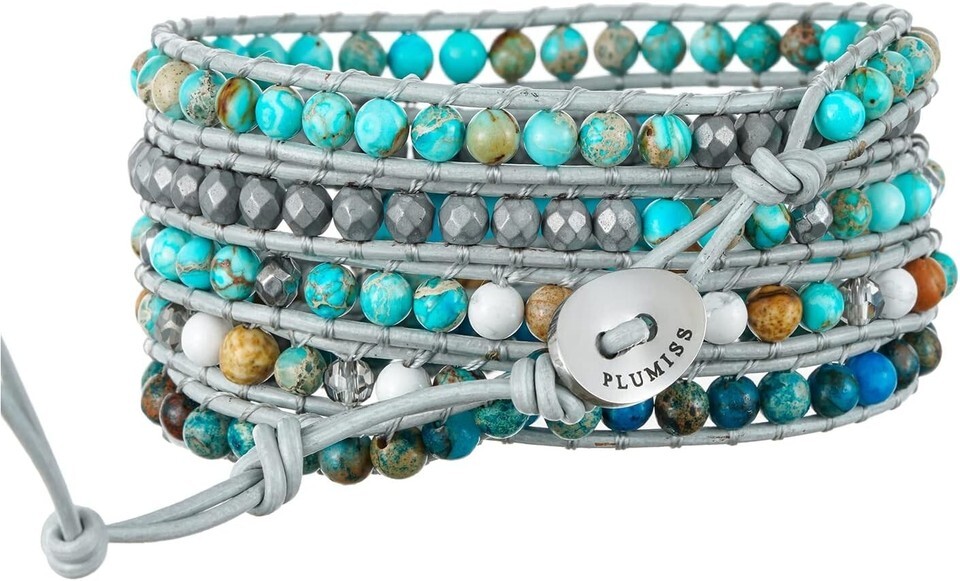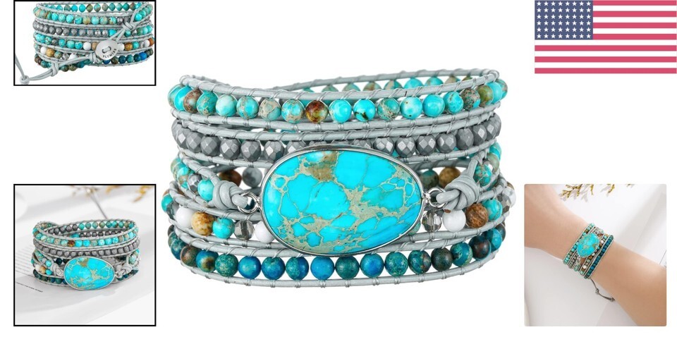 Material: Crafted from Genuine Leather, adorned with Natural Turquoise, Jasper, Hematite, and a stunning 925 Silver Button.