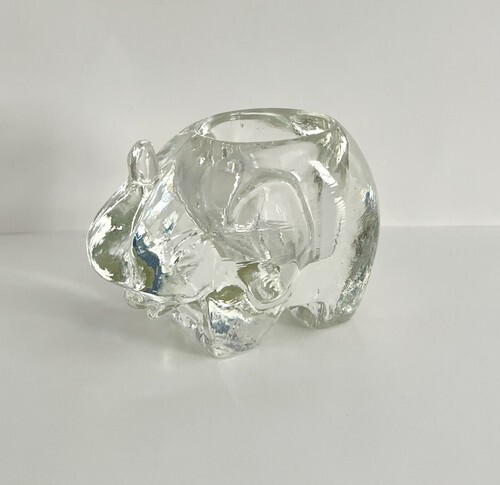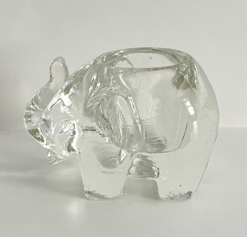 Elephant Candle Holder Glass New OB Vintage 90s Tea Light 4 x 3"