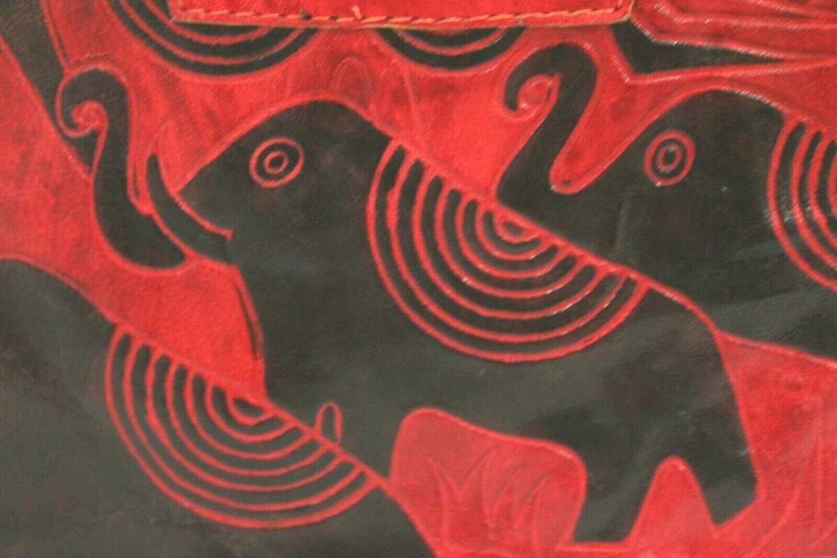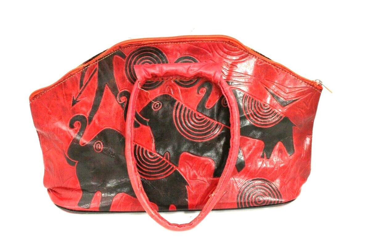 - Elephant print hand painted leather Purse handbag Cool Shape Red Black
