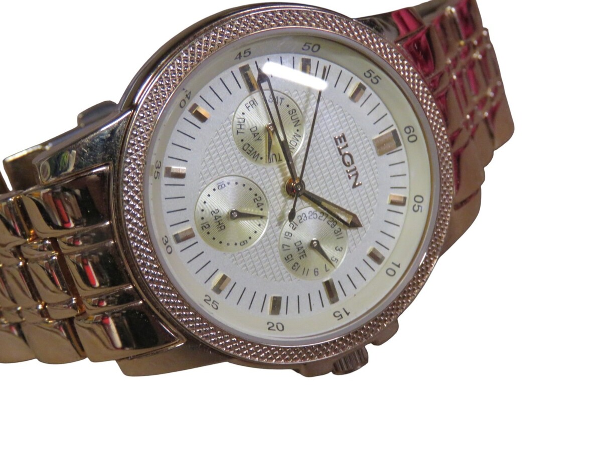 - Elgin Men’s Chronograph-Style Dress Watch Stainless Steel Bracelet, White Dial