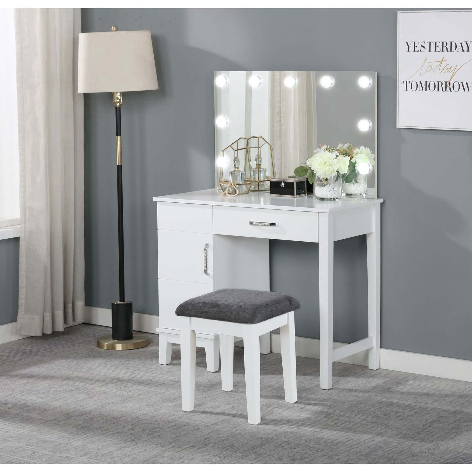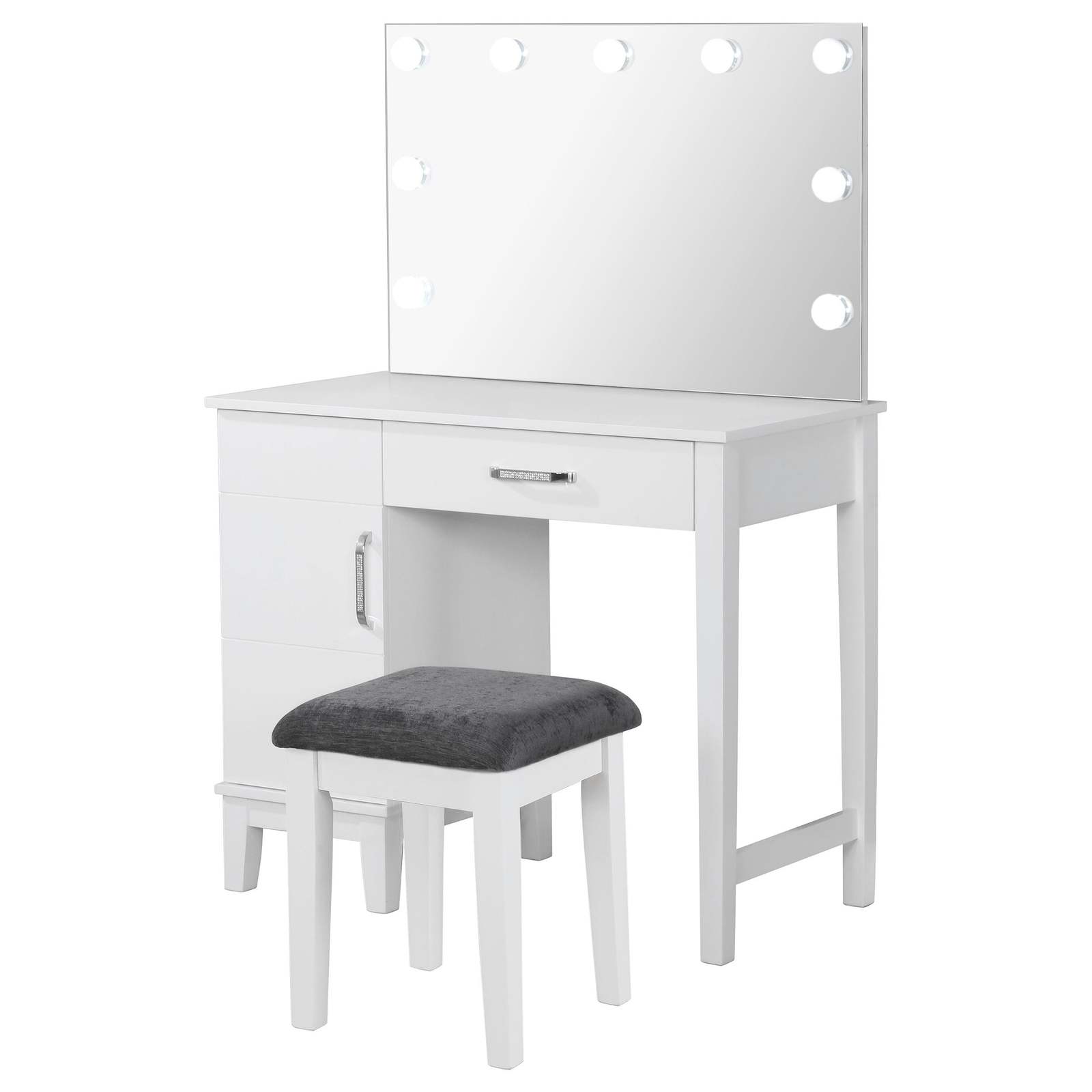 - Elijah White & Dark Grey Vanity Set: Lighting & Stool Included
