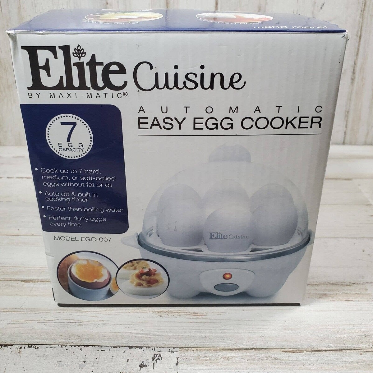 Elite Cuisine Automatic Easy Egg Cooker Model EGC-007 TESTED. Tested and works. If you have any questions, please don't hesitate to ask. It comes from a smoke-free home. Shipping quote is only for the lower 48 states, outside of that, please contact me for an accurate shipping quote.