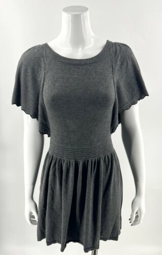 - Ella Moss Sweater Dress Girls Size 14 Gray Flutter Scalloped Sleeve Stretch