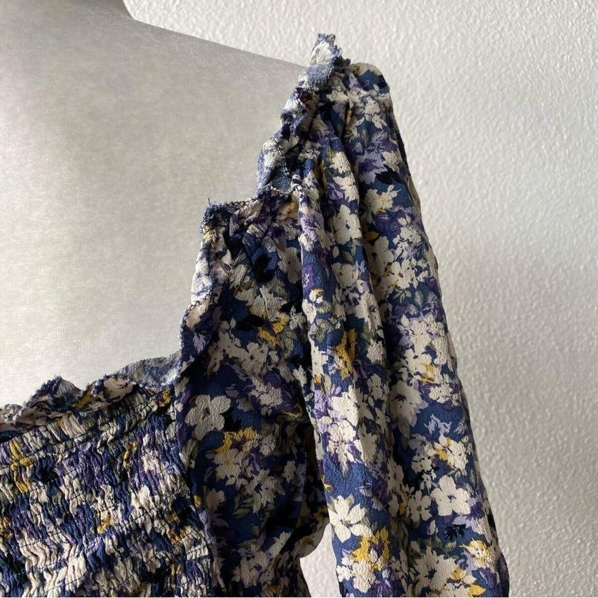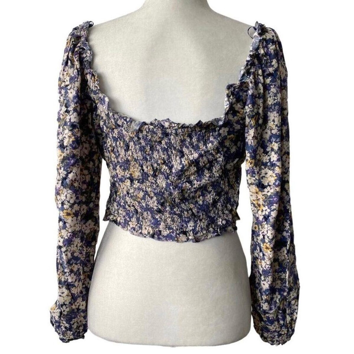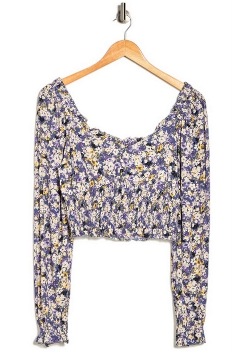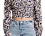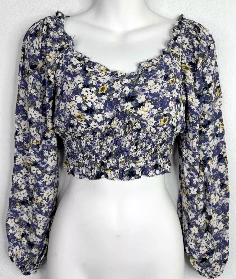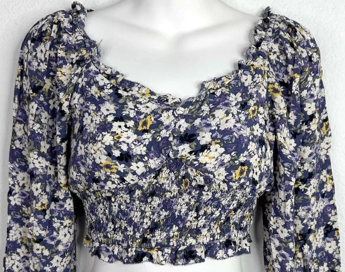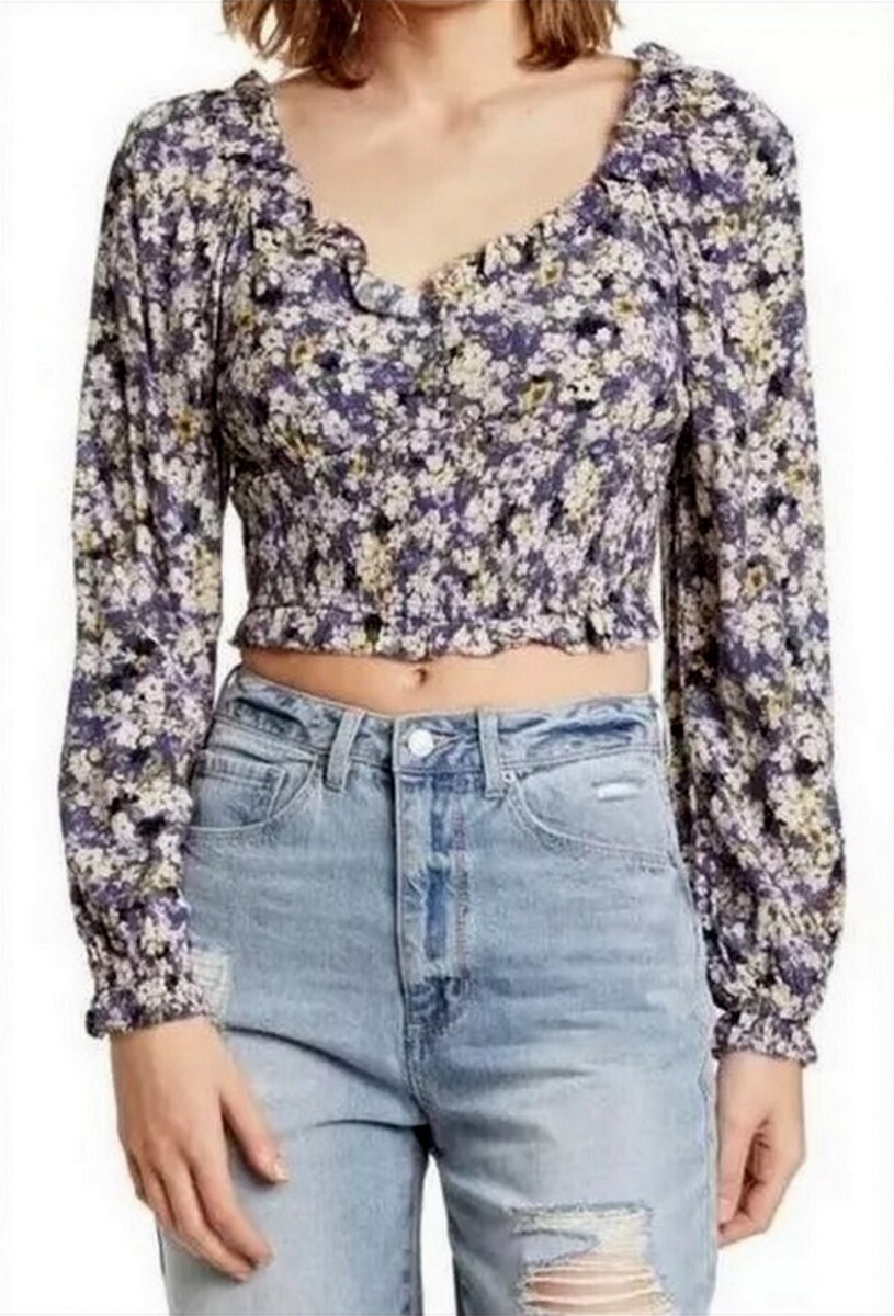 - Elodie Women's Long Sleeve Ruffle Neckline Crop Top Navy Floral Size XS, S, L