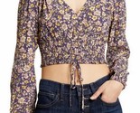 Elodie Women's Long Sleeve Smocked Waist Crop Top, Purple Floral Size S, M, L