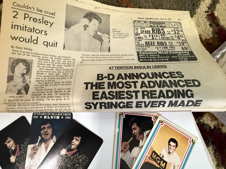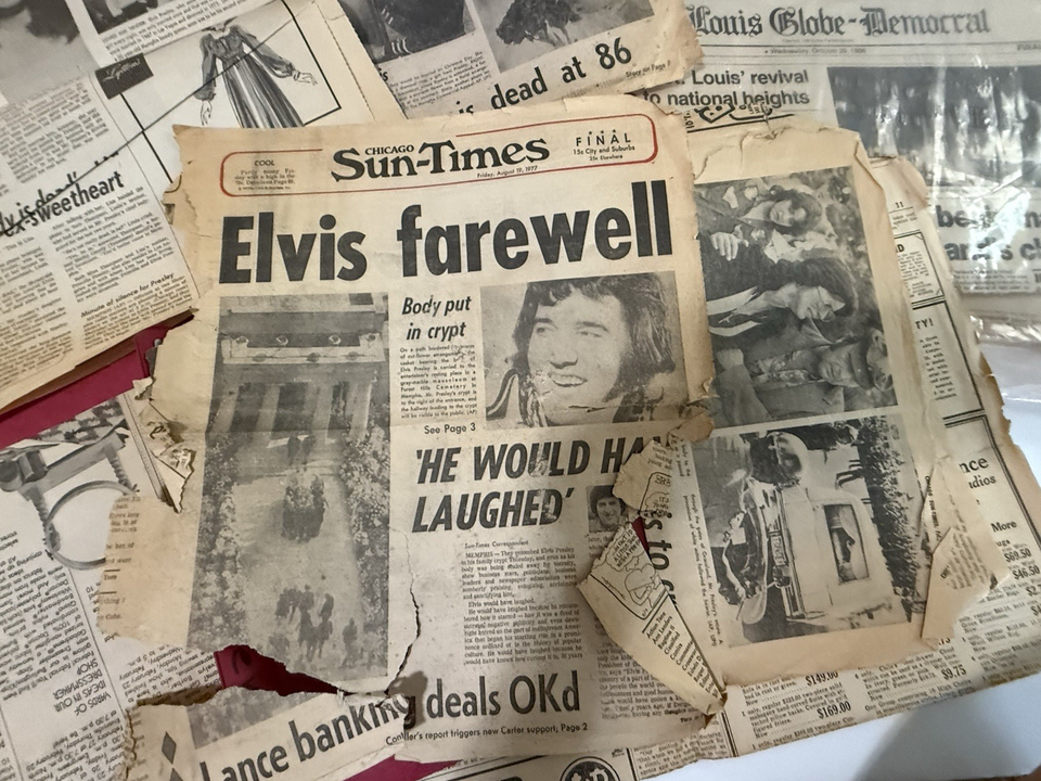 The newspapers commemorating Elvis.