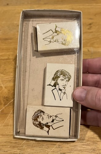 This set of three matchboxes is a must-have for any Elvis Presley fan. The white matchboxes with gold Elvis on them were made in honor of the King's life, which spanned from 1935 to 1977. These matches are a great addition to any collection of entertainment memorabilia, especially for those who love rock and pop music.