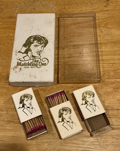 The set features images of Elvis and is perfect for collectors of memorabilia related to the King of Rock and Roll. The matchboxes are in excellent condition and are a great way to show off your love for Elvis Presley. This rare find is a perfect addition to any music or entertainment collection.
