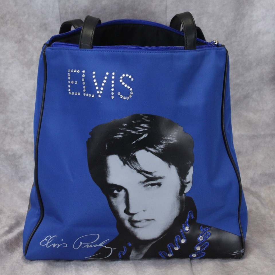 Elvis Presley Tote Handbag Zipper Top Pockets Rhinestones Vintage 0323Es1