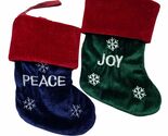 Primary image for Embroidered Christmas Stocking Pair PEACE JOY Velvet Ornament 6 1/2”