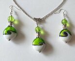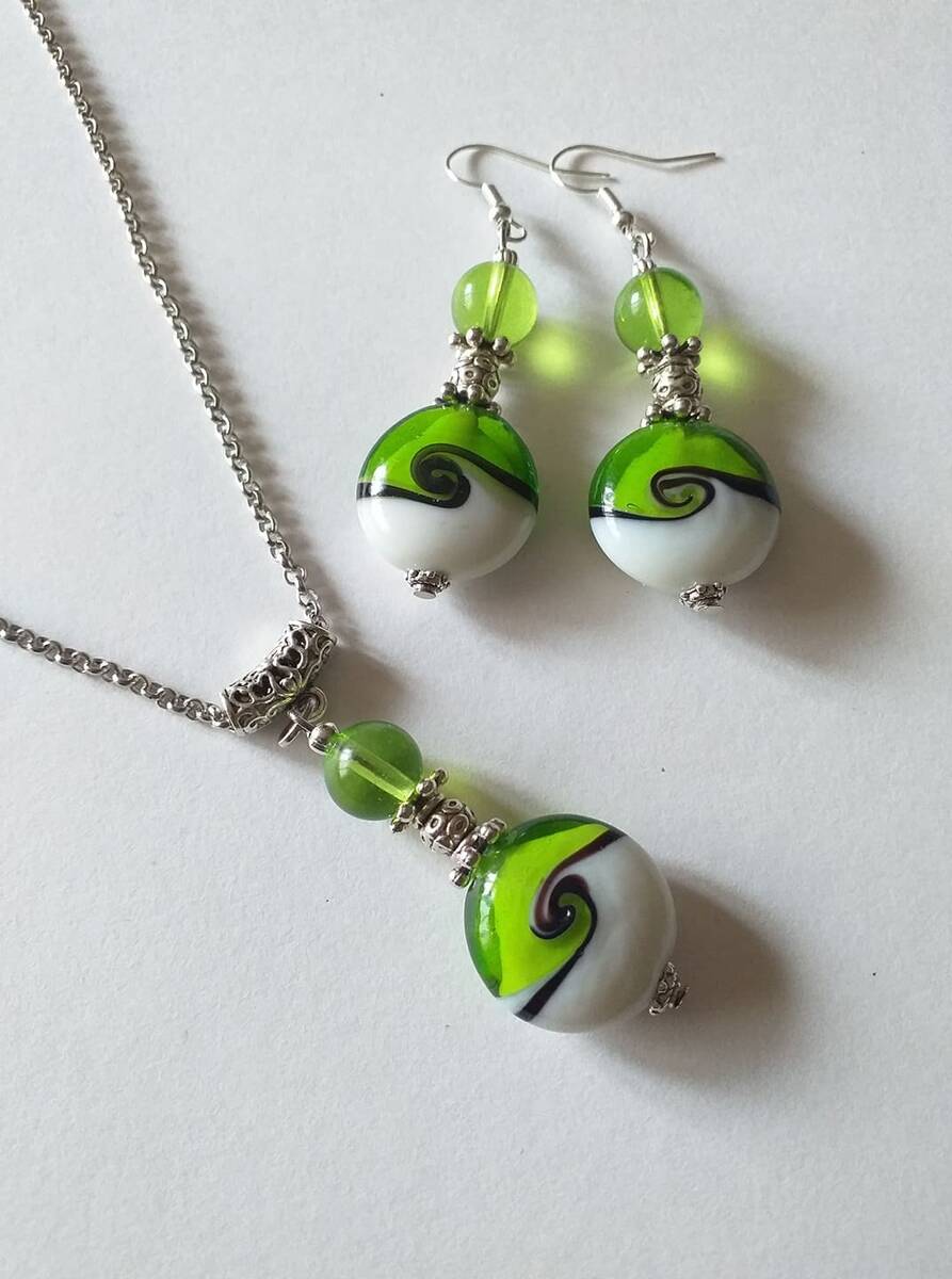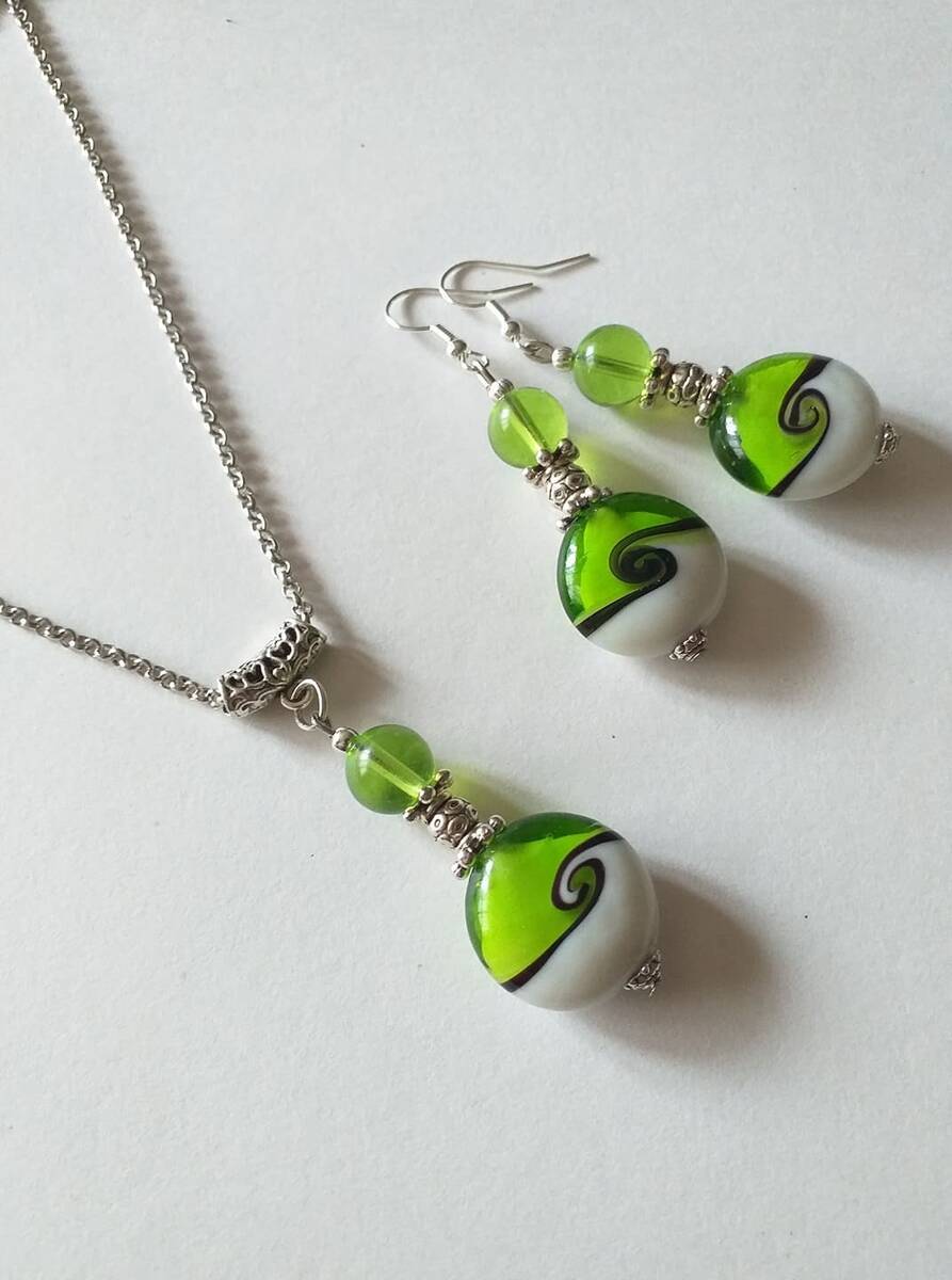 Silve-toned ornaments and amazing emerald green handmade Murano glass beads jewelry set necklace and earrings . Bohemian necklace and earrings .