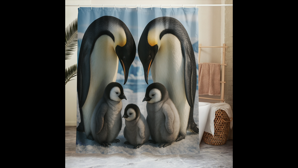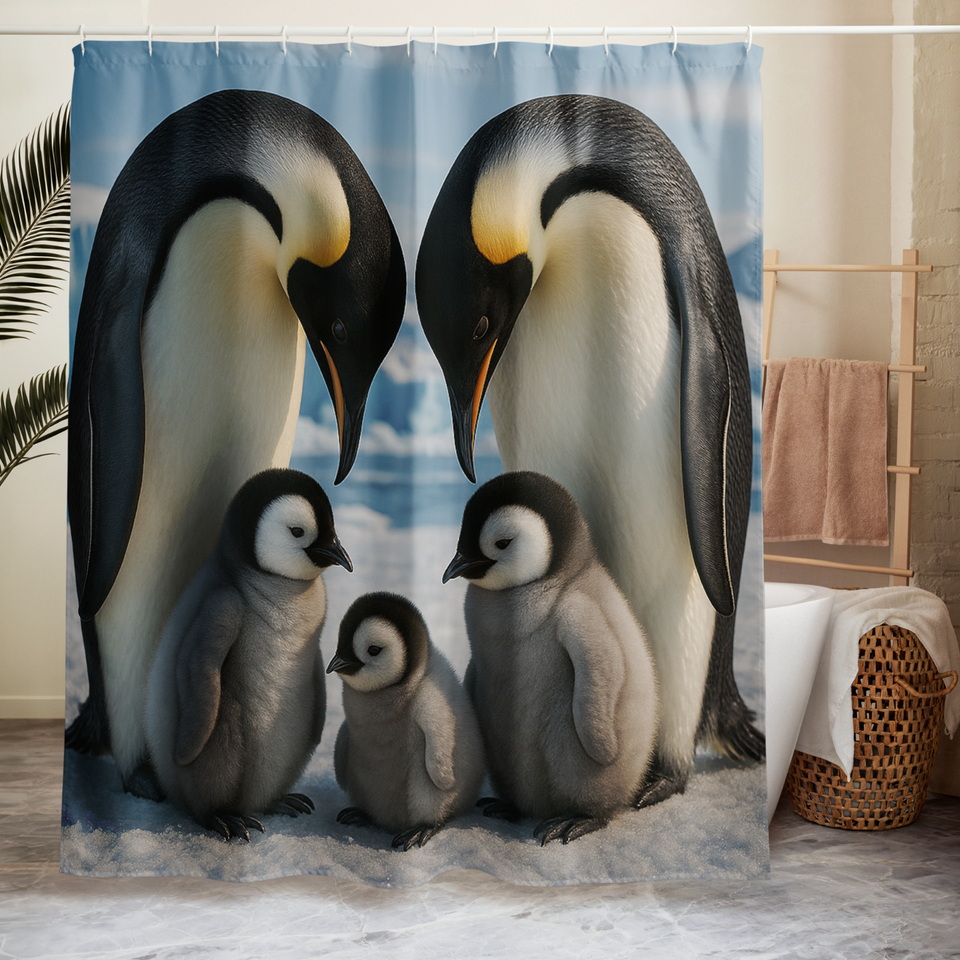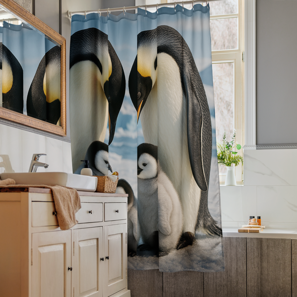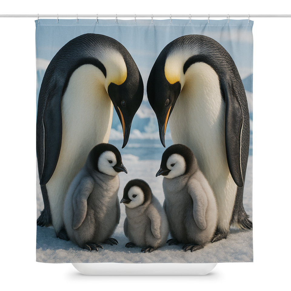 - Emperor Penguin Family Shower Curtain – Antarctic Wildlife Bathroom Decor