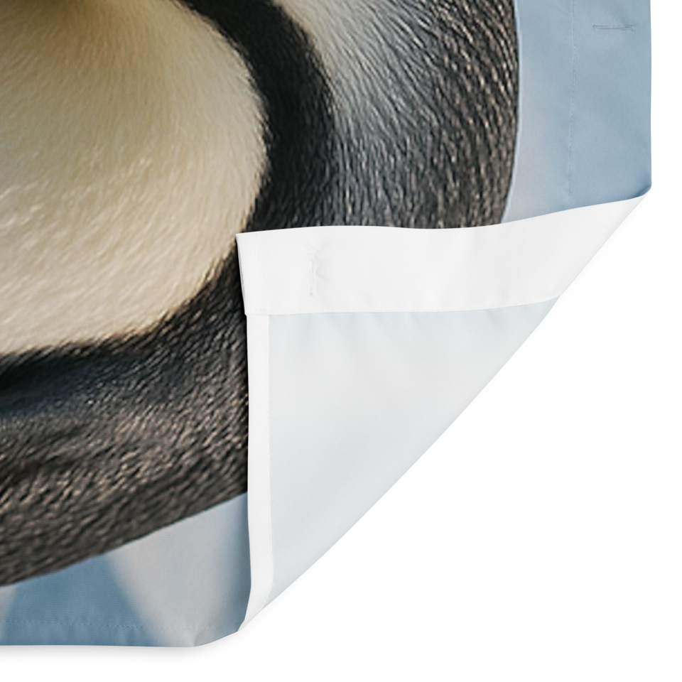 Transform your bathroom into a serene Antarctic scene with this stunning shower curtain, featuring a heartwarming image of two Emperor penguins lovingly gazing down at their fluffy chicks. The crisp icy backdrop and detailed lifelike artwork bring a touch of nature?s beauty right into your home.