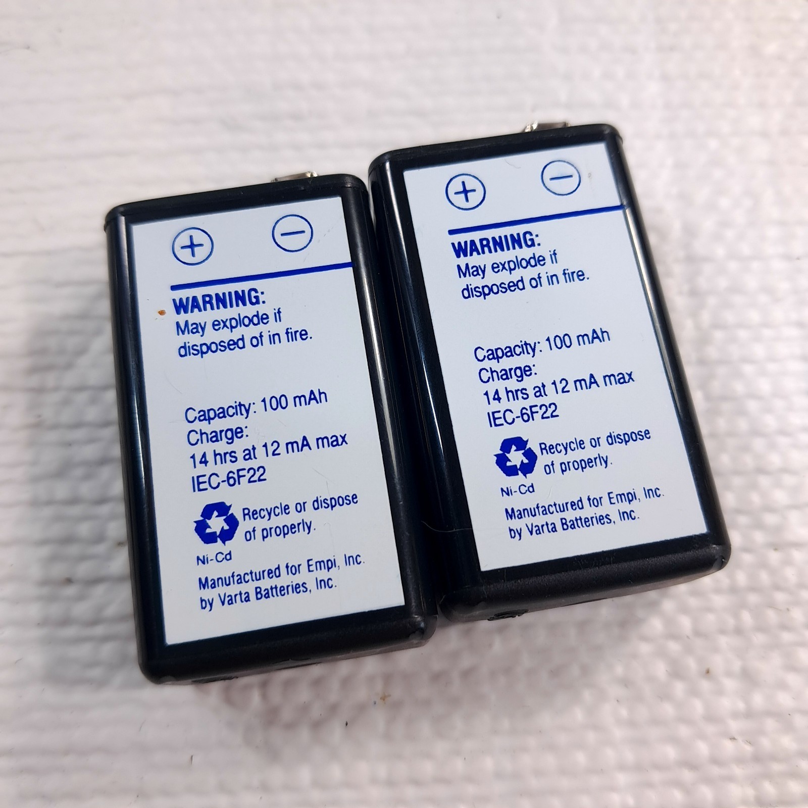 Empi set 2 Rechargeable Battery Nickel Cadmium 8.4 Volt 200008/Varta for parts Does not charge. Selling AS IS FOR PARTS/REPAIR.