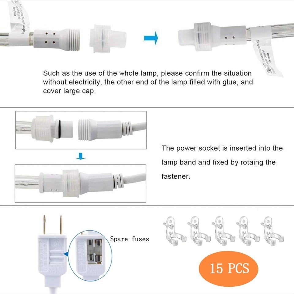 IP 65 Waterproof: Designed for durability, these rope lights are protected by a transparent and robust PVC tube that offers 360 illumination and withstands various weather conditions. (Note: The plug part is not waterproof.)