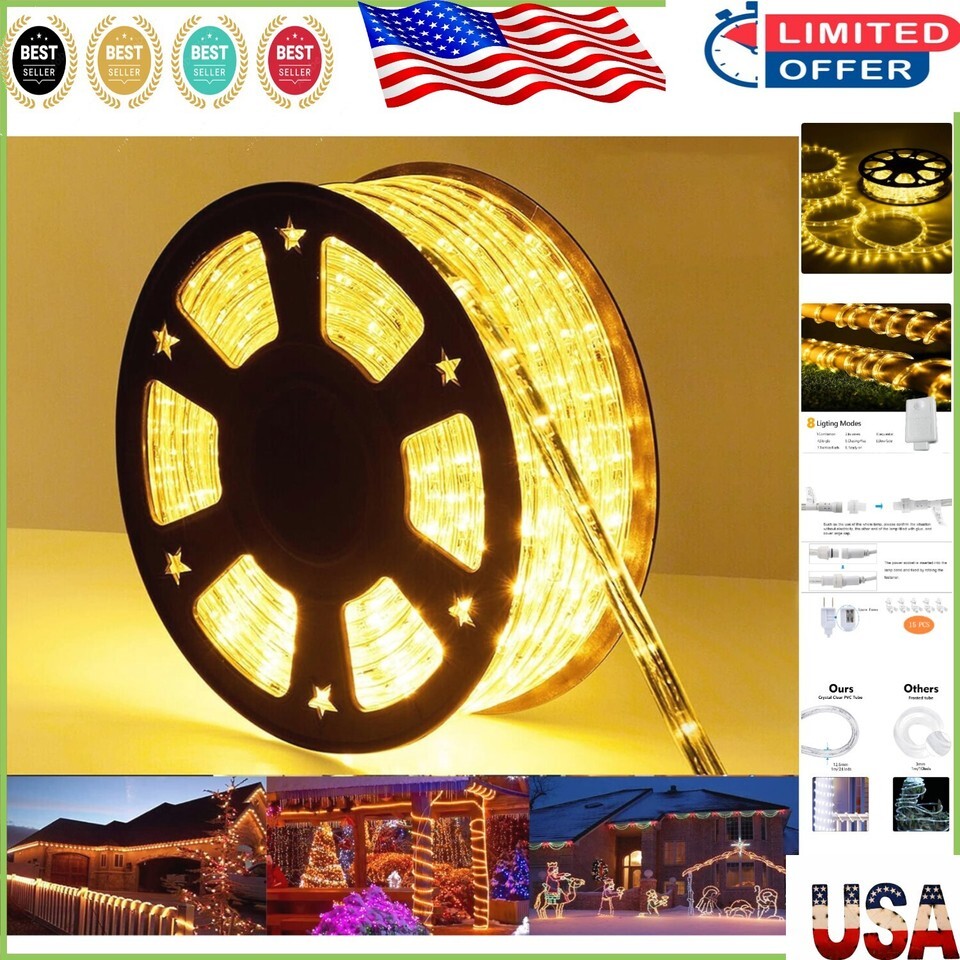 Enchanting 50ft LED Rope Lights ? 360 Illumination with Timer Memory Function