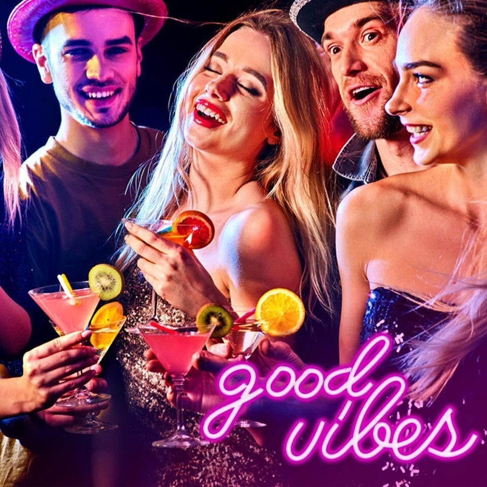 - Energetic Good Vibes Neon Wall Light - Elegant Pink LED Decor for Bedrooms