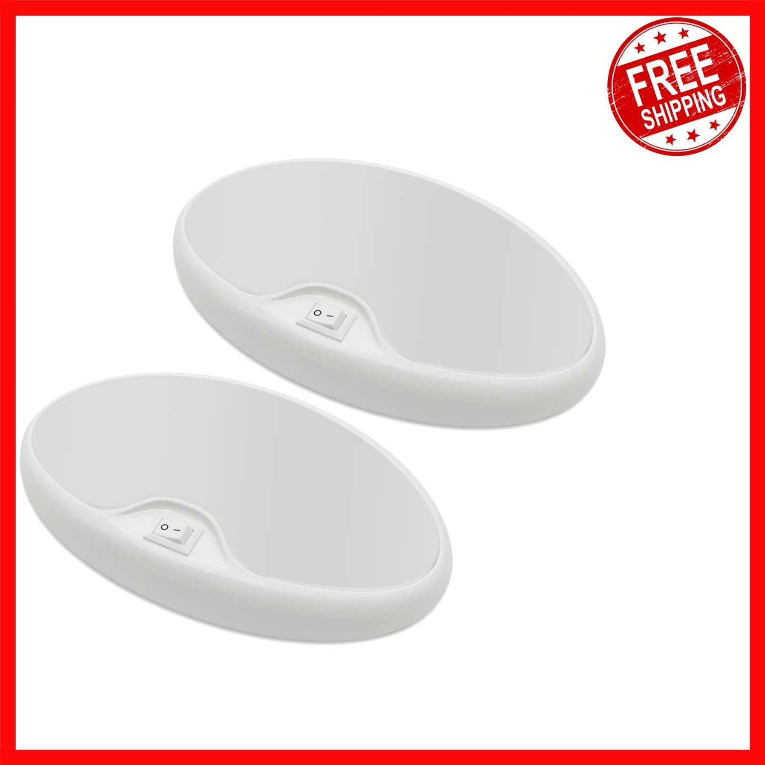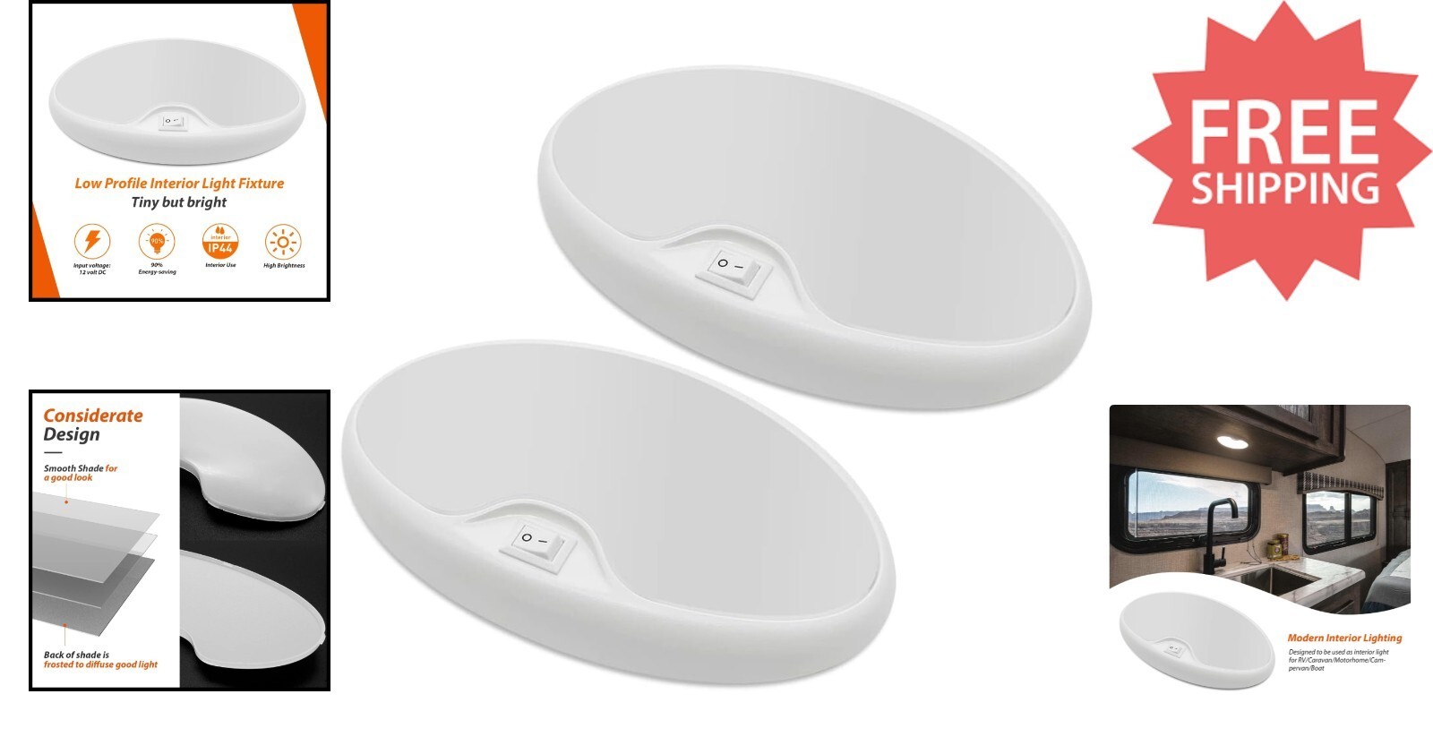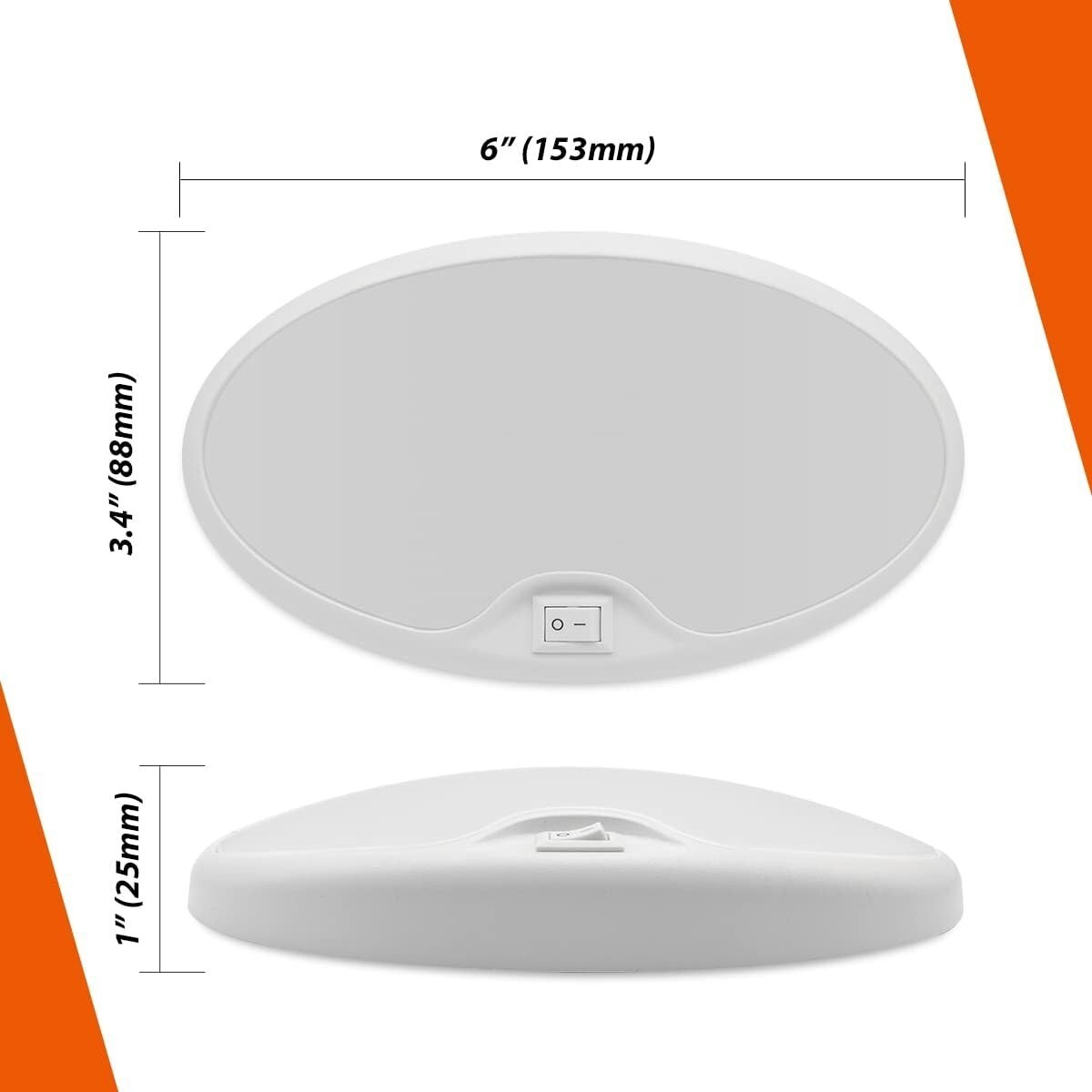 Upgrade your vehicle's lighting with this versatile 6-inch oval dome light, specially designed for 12-volt automotive applications such as RVs, travel trailers, camper vans, fifth wheels, and boats. Equipped with an integrated on/off mechanical switch, it offers convenient control at your fingertips. Crafted from durable, lightweight, heat-resistant plastic, the housing features a hollow design for efficient heat dissipation. It is fitted with energy-efficient LED bulbs that consume just 4.5 watts while providing a bright 300 lumens of white light, with a lifespan exceeding 30,000 hours?reducing the need for frequent replacements. Easy to install via surface mounting with two screws, the wiring is straightforward: black for hot and white for ground. Enhance your vehicle's interior with reliable, long-lasting illumination. To ensure fast and reliable delivery, we work with multiple fulfillment partners and suppliers. Depending on availability and location, your order may ship from different warehouses or arrive in packaging that varies from item to item. Tracking details are typically provided shortly after shipment, and customer satisfaction remains our top priority. Please note that due to carrier policies and regional regulations, certain items may not be eligible for delivery to specific states or territories.