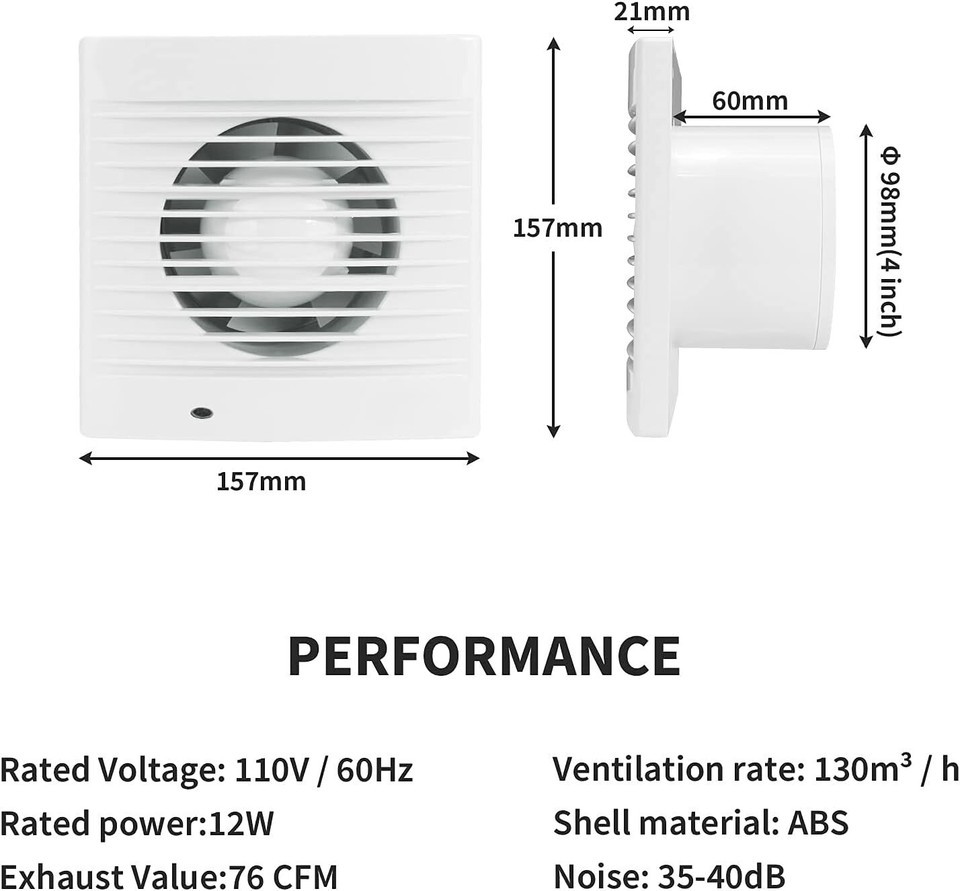 - Energy-Efficient 12W Ventilation Extractor for Kitchen & Bath - 4 Inch