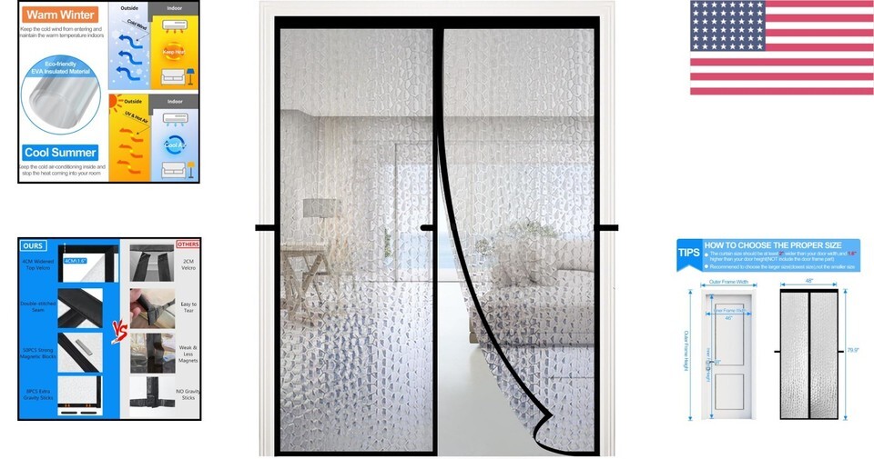 - Energy-Efficient Magnetic Insulated Doorway Screen 46"x78" – Windproof & Safe
