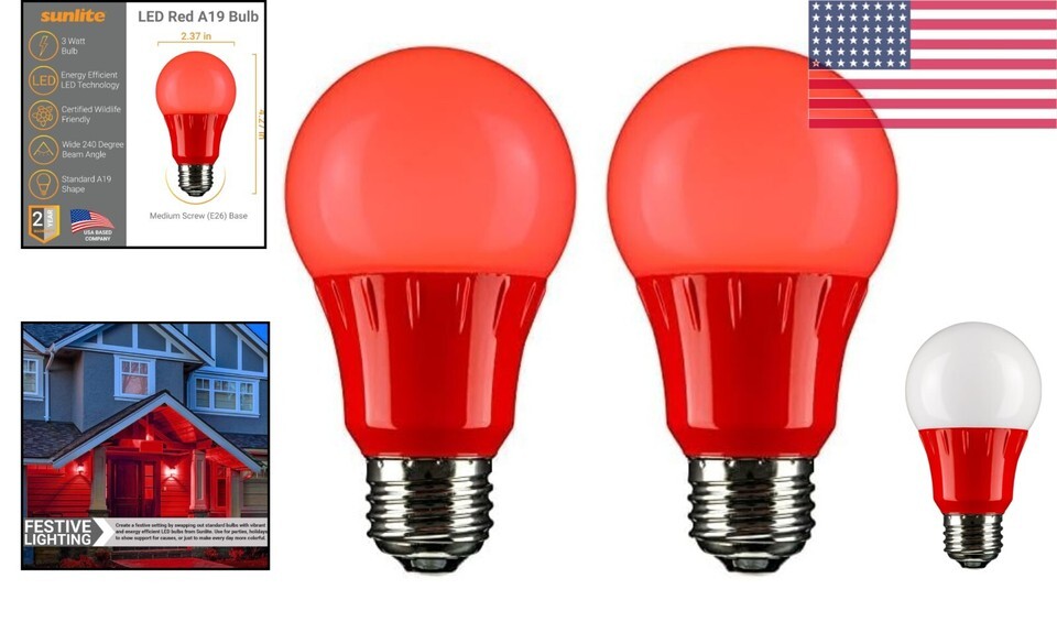- Energy-Efficient Red LED Light Bulb - 3W Equivalent to 25W, Listed, 2 Pack