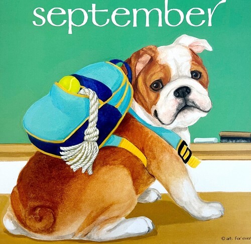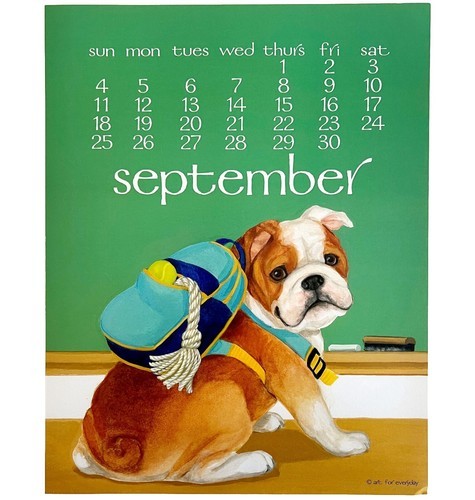 English Bulldog School September Dog Days Poster Calendar 14 x 11" Art DWDDCal