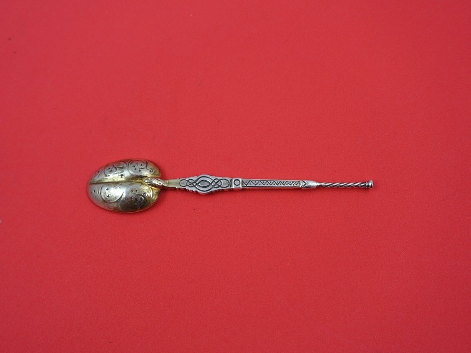 English estate sterling silver Coffee Spoon, gold washed, London 1952 by WEK Walter King, replica of the coronation 4 5/8", (maker unknown). It is not monogrammed and is in excellent condition.