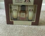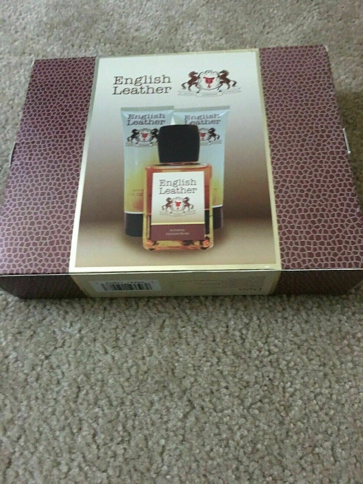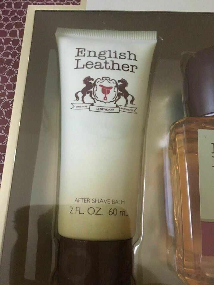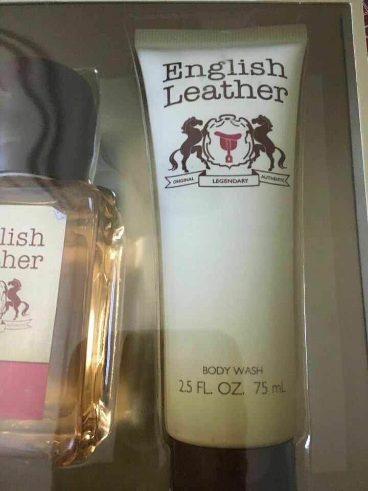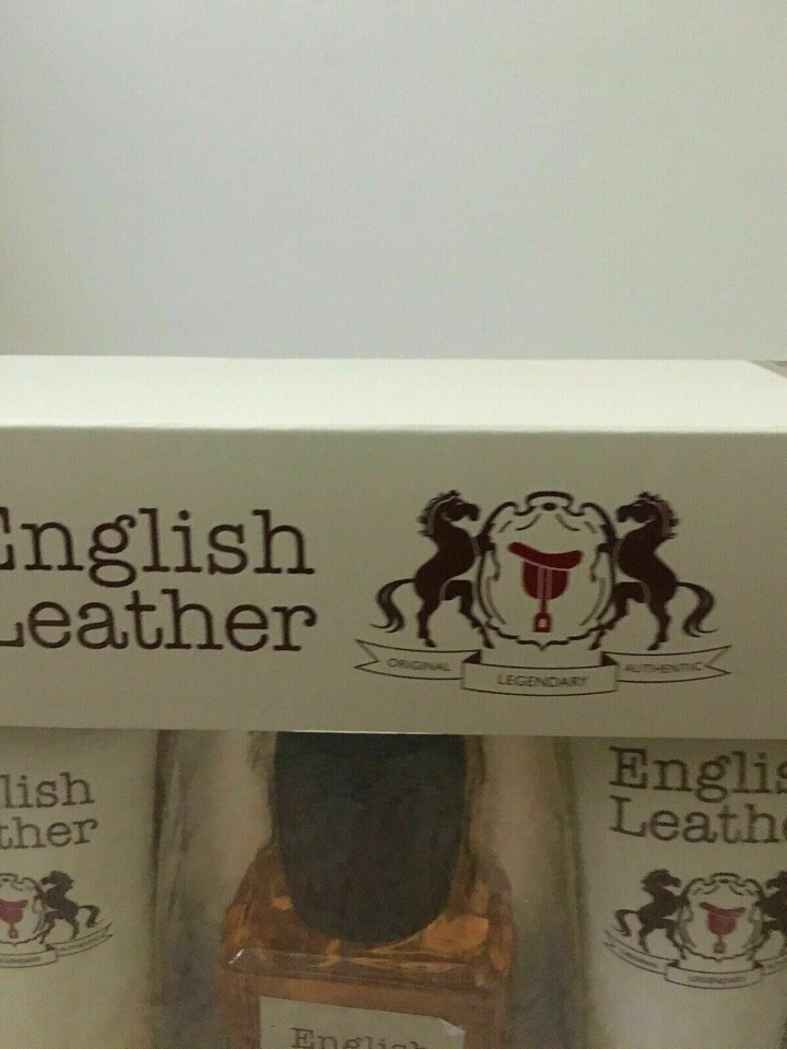 ENGLISH LEATHERby Dana Body Splash Baum Cologne After Shave For Men's 3-Piece Fragrance Cologne Gift Set NEW. The box is bent/torn in places due to shipping and handling.