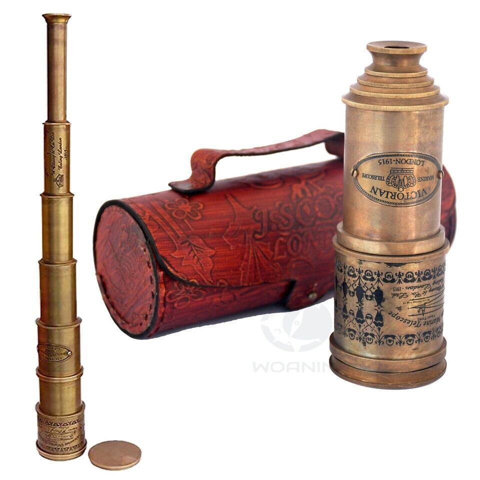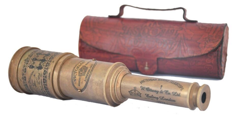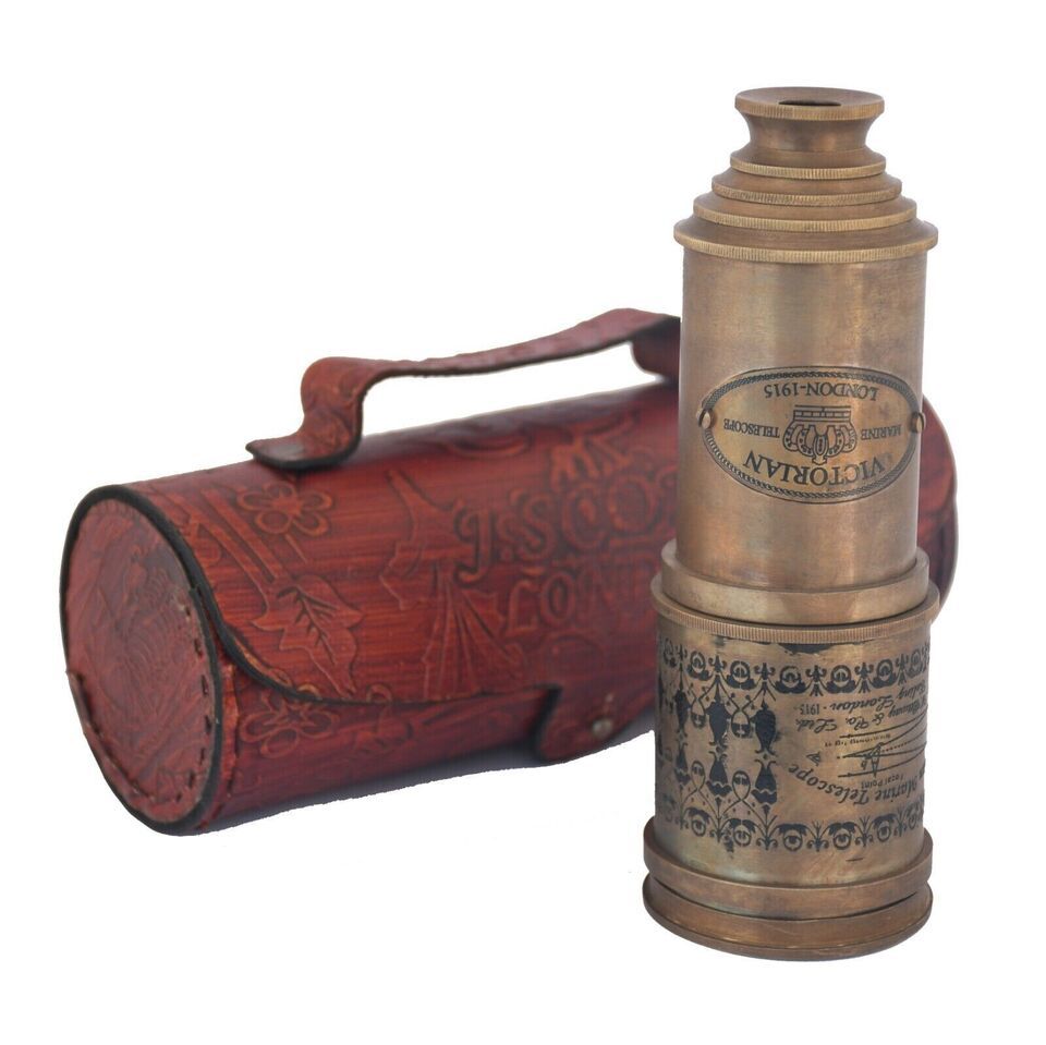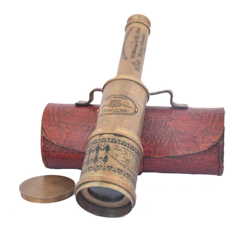 Fine Quality and Exquisite - 100% Hand Crafted using Brass high quality genuine premium Leather box. This monocular is designed with durable brass. Heavy Build Quality construction comes with black Antique finish This pirate spyglass replica has a sliding sunshade cover, which pulls out to reduce glare in bright light.