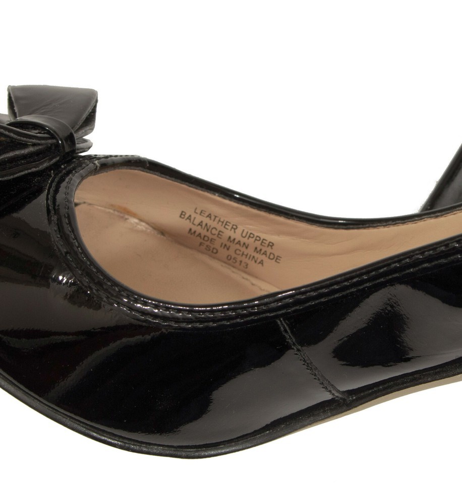 Patent leather uppers, cute bow on toes, Padded inner sole |