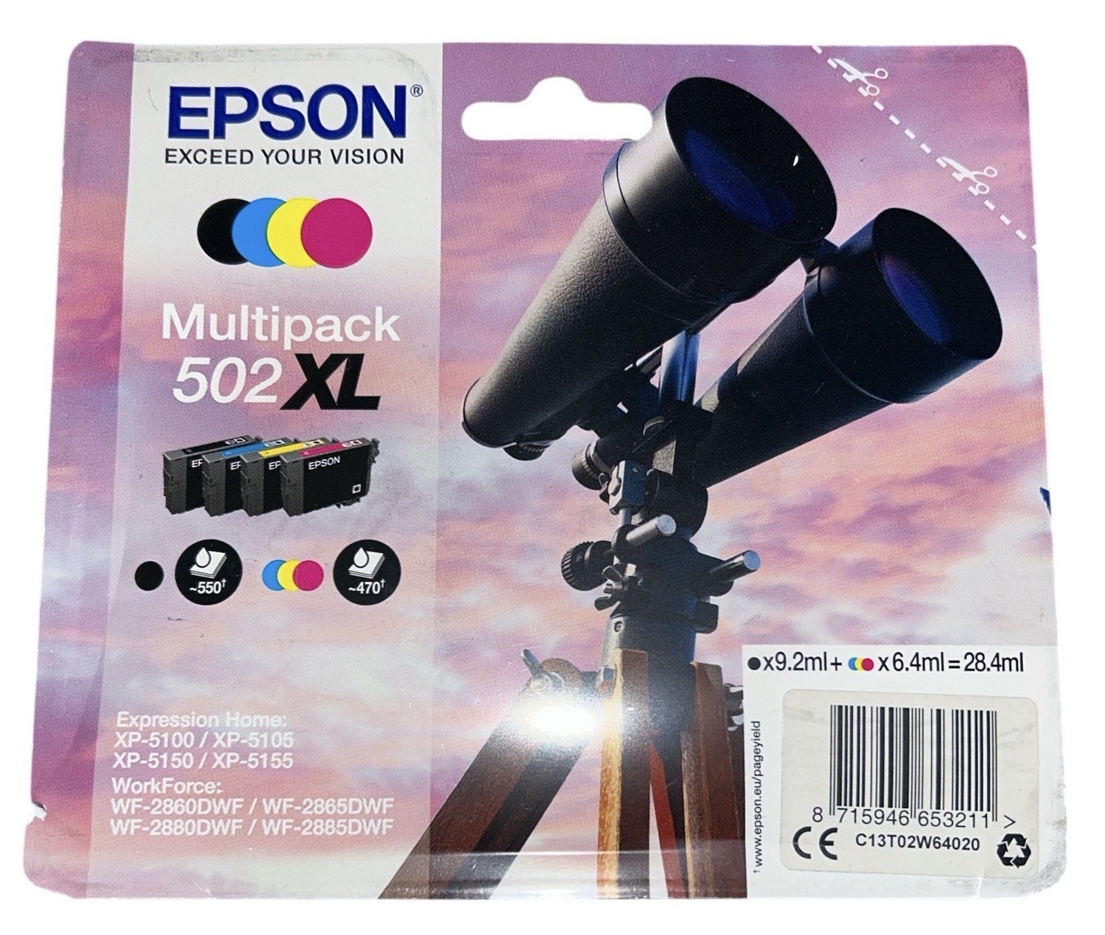 - Epson 502XL Multipack - 4 Pack Ink Cartridges - Black, Cyan, Magenta, Yellow